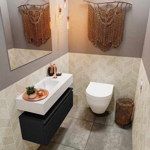 MONDIAZ ANDOR Meuble WC - 80x30x30cm - 1 trou de robinet - 1 tiroir - urban mat - vasque au milieu - Solid surface - Blanc