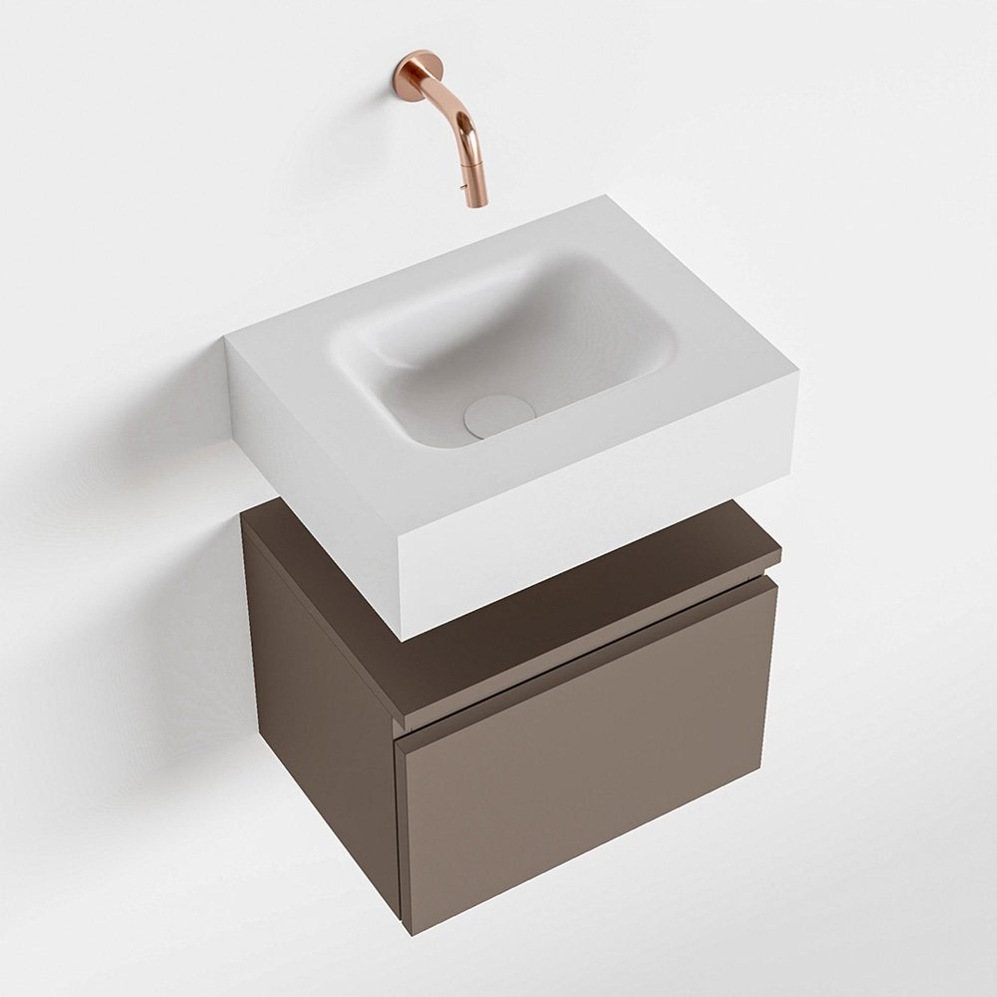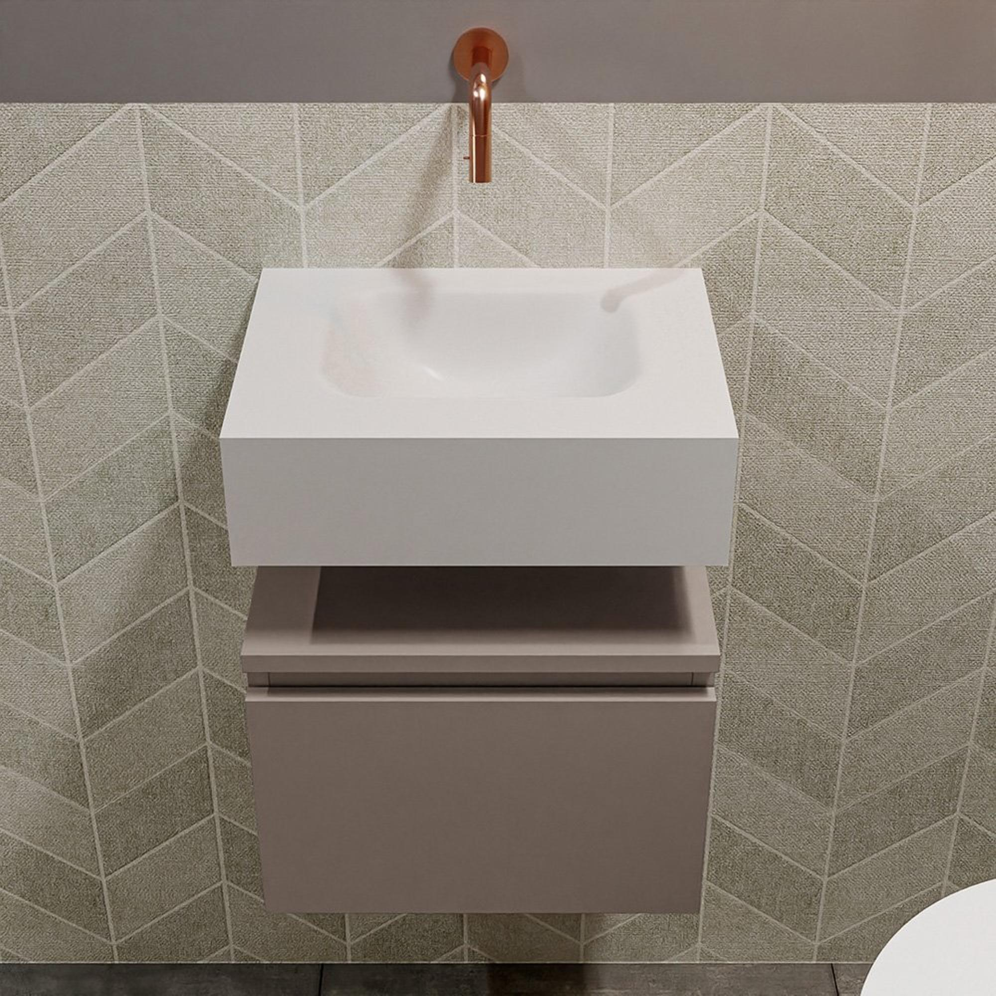 MONDIAZ ANDOR Meuble WC - 40x30x30cm - 0 trous de robinet - 1 tiroir - smoke mat - lavabo au centre - Solid surface - Blanc