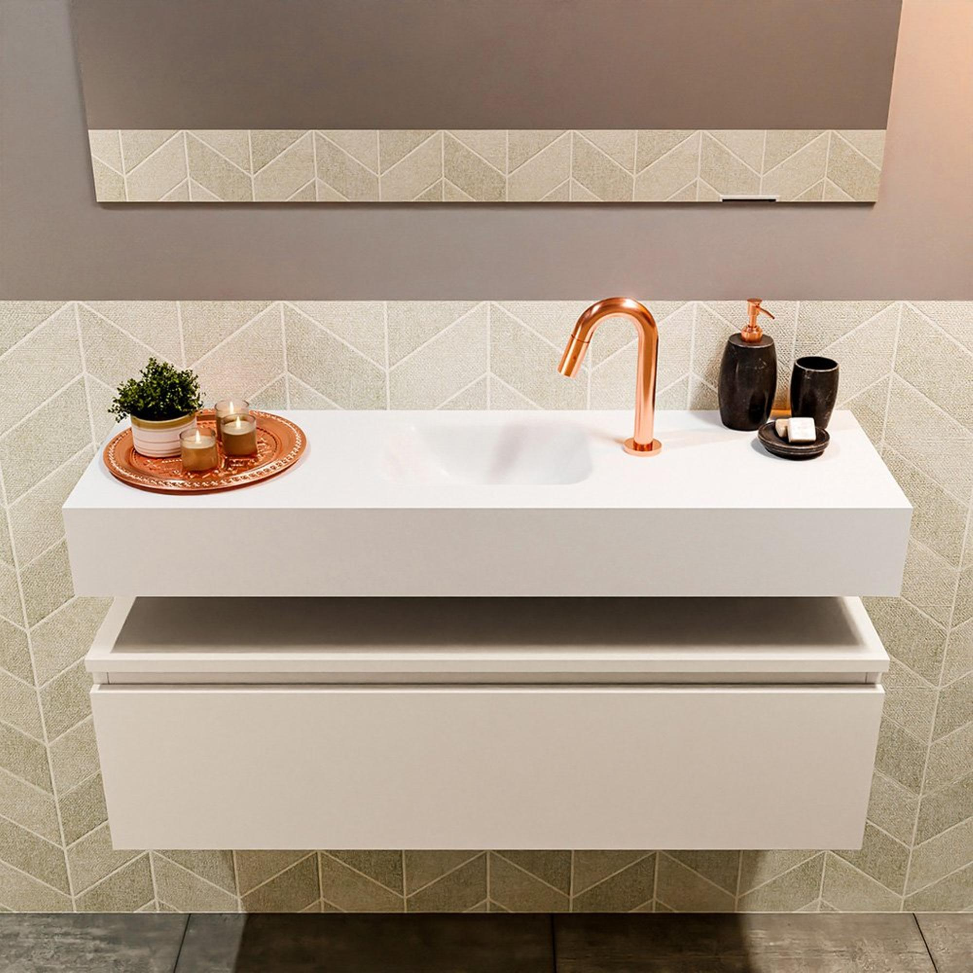 MONDIAZ ANDOR Meuble WC - 100x30x30cm - 1 trou de robinet - 1 tiroir - linen mat - vasque au milieu - Solid surface - Blanc