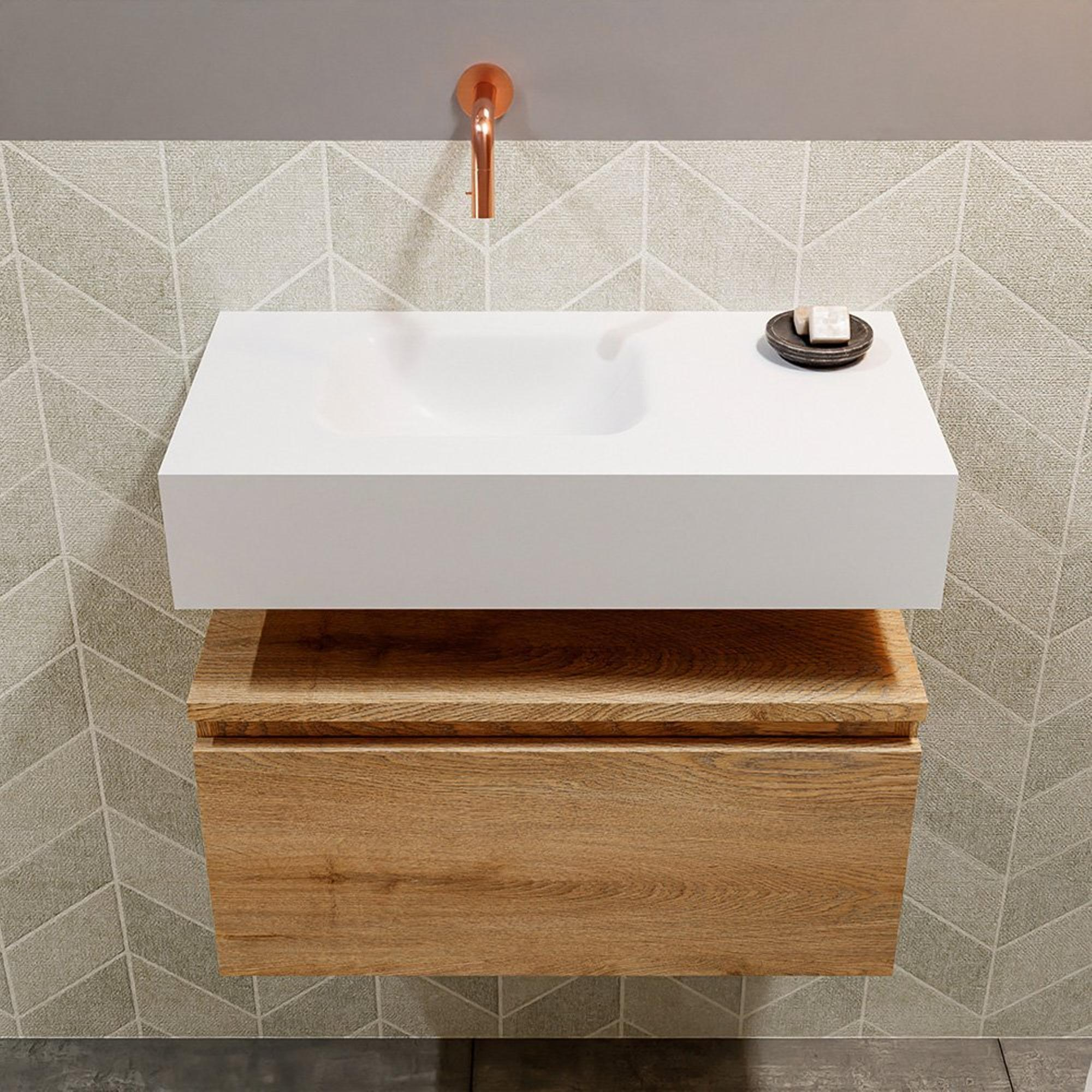 MONDIAZ ANDOR Meuble de toilettes - 60x30x30cm - 0 trous de robinet - 1 tiroirs - chêne blanchi mat - vasque à gauche - Solid surface - Blanc