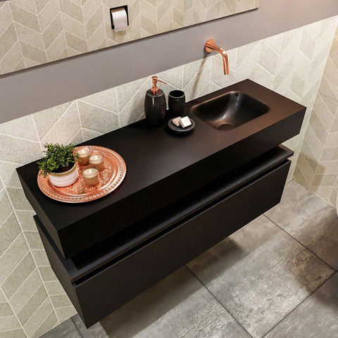 MONDIAZ ANDOR Meuble WC - 100x30x30cm - 0 trous de robinet - 1 tiroirs - urban mat - lavabo à droite - Solid surface - Noir