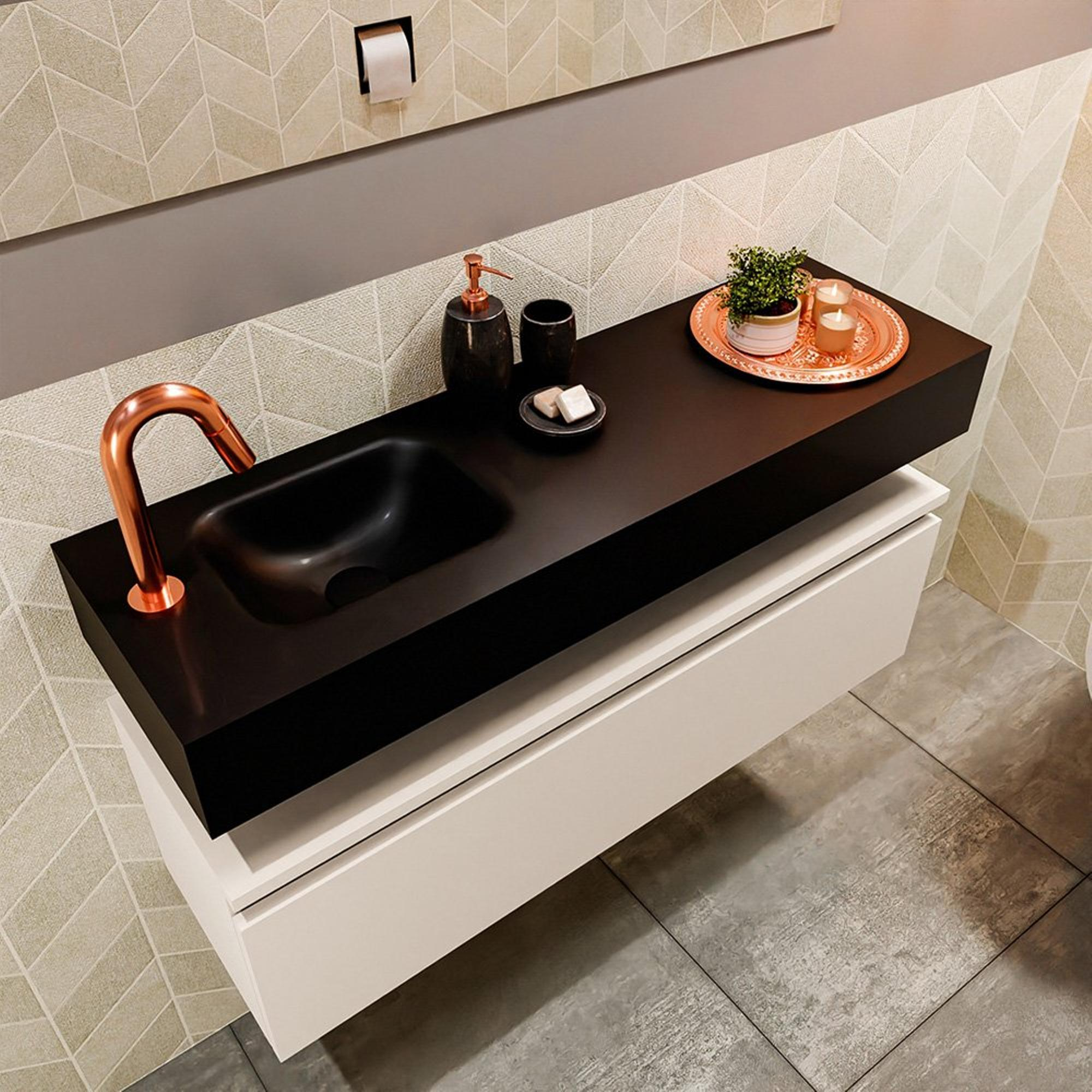 MONDIAZ ANDOR Meuble WC - 100x30x30cm - 1 trou de robinet - 1 tiroir - linen mat - vasque à gauche - Solid surface - Noir