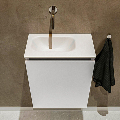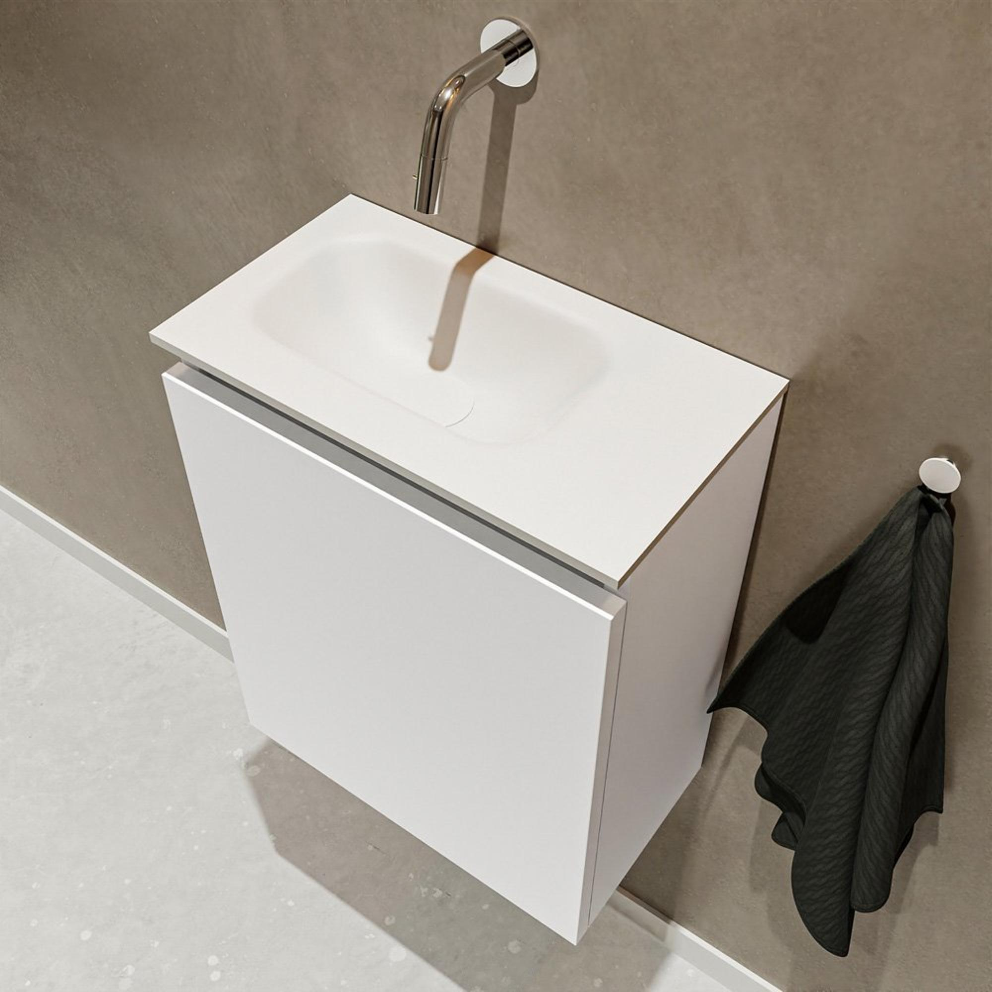 MONDIAZ TURE Kit lave-mains - 40x23x50cm - 0 trous de robinet - 1 porte - talc mat - Lavabo à gauche - Solid Surface Blanc