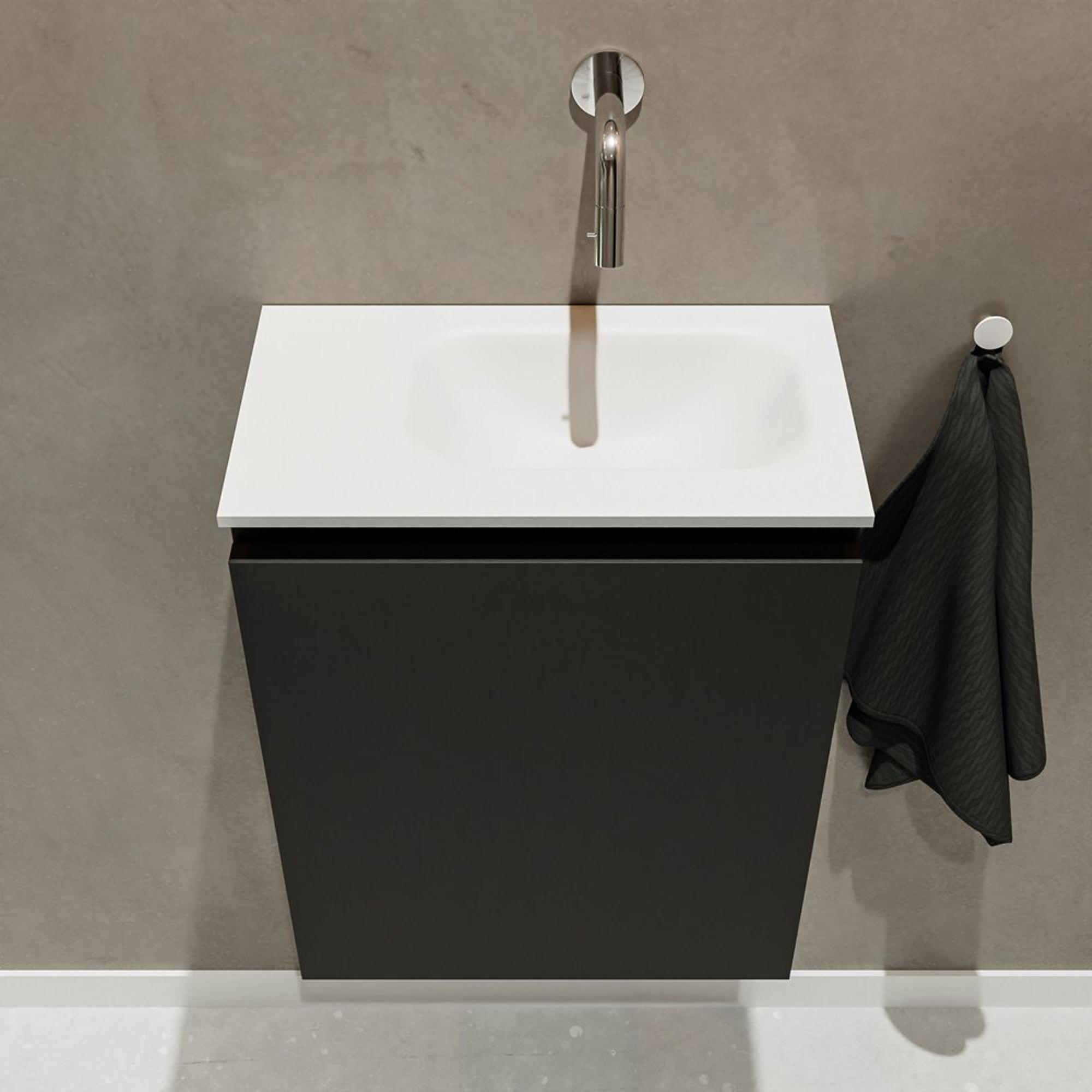 MONDIAZ TURE Kit lave-mains - 40x23x50cm - 0 trous de robinet - 1 porte - urban mat - Lavabo à droite - Solid Surface Blanc