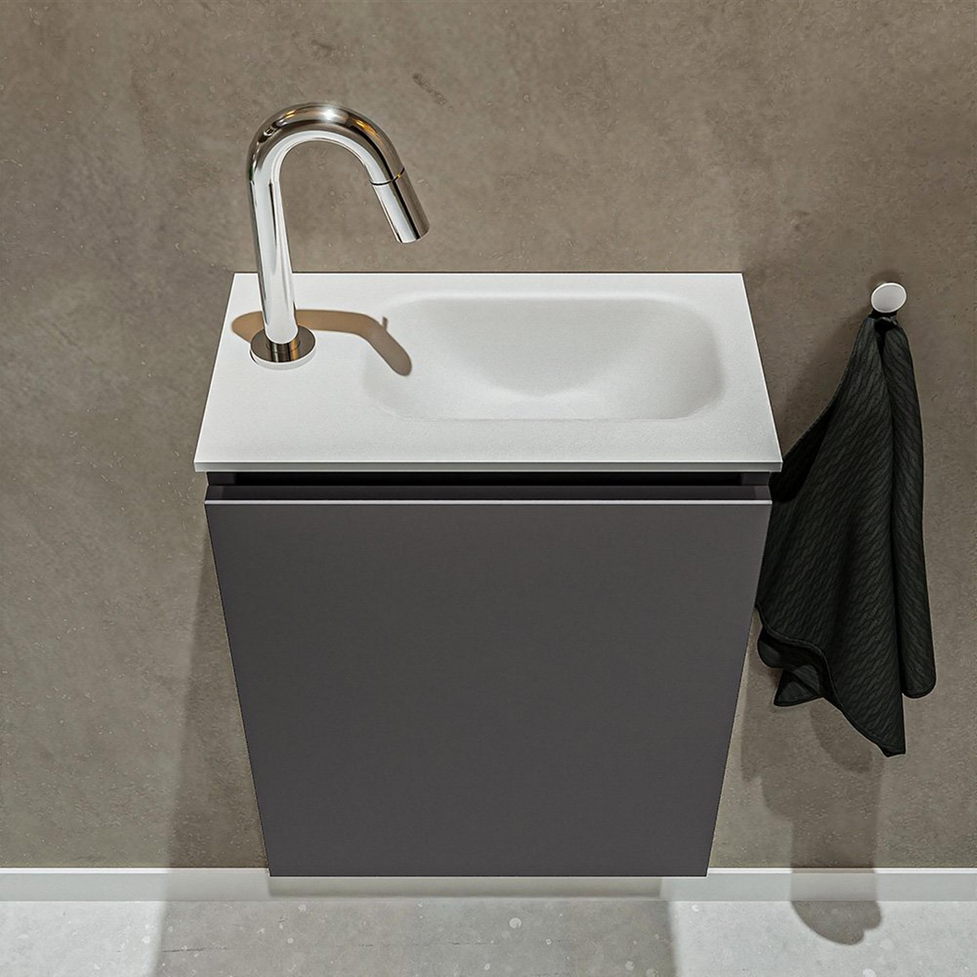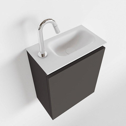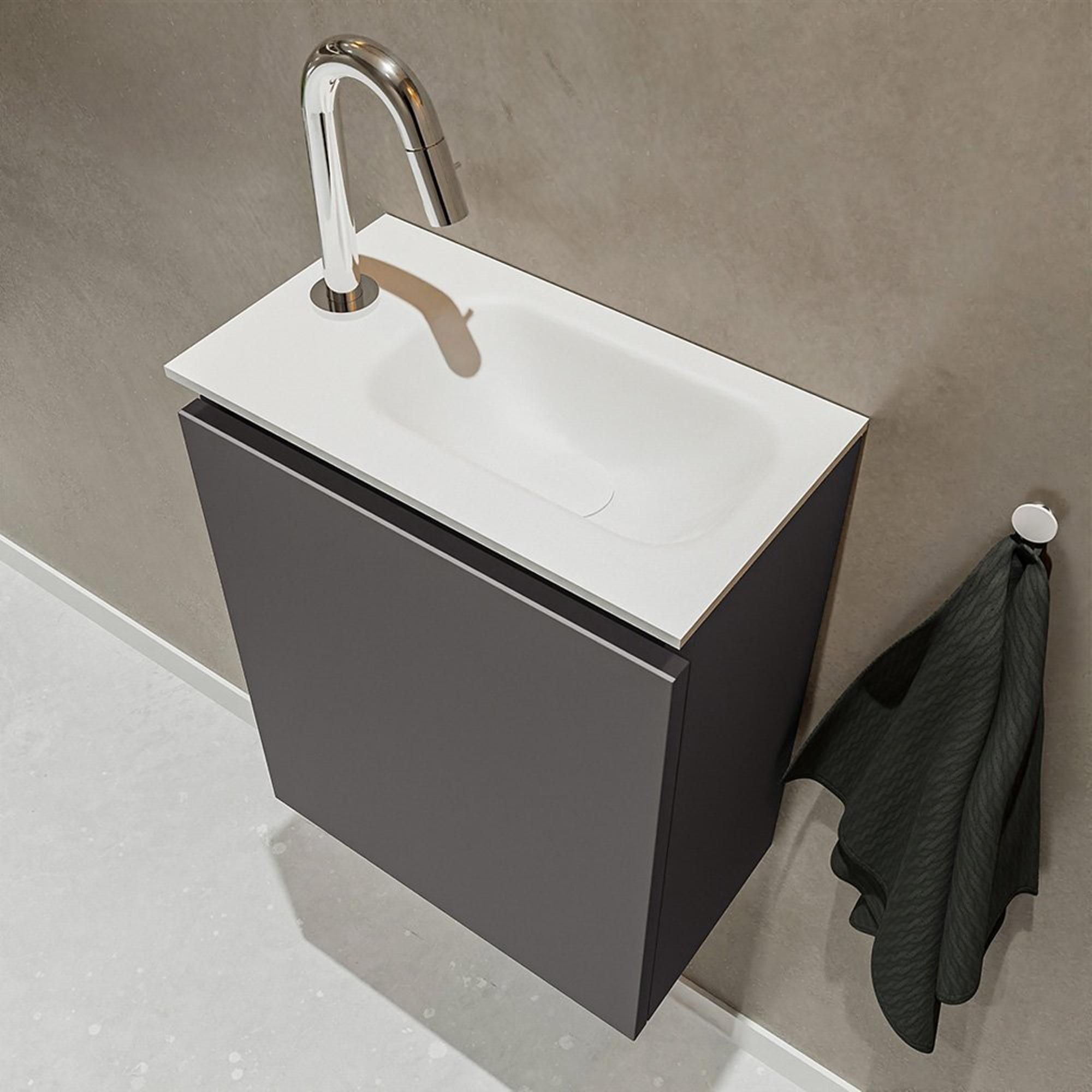 MONDIAZ TURE Kit lave-mains - 40x23x50cm - 1 trou de robinet - 1 porte - gris foncé mat - Lavabo à droite - Solid Surface Blanc