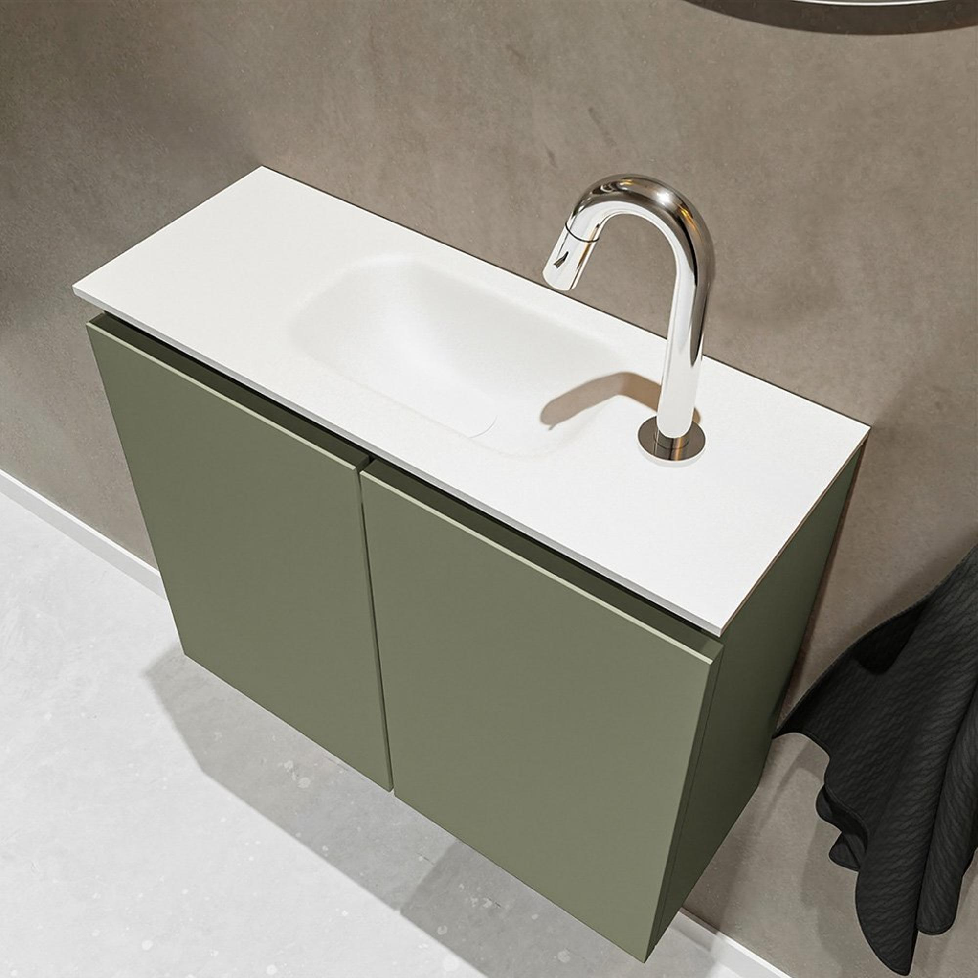 MONDIAZ TURE Kit lave-mains - 60x23x50cm - 1 trou de robinet - 2 portes - army mat - Lavabo au centre - Acrylique Blanc