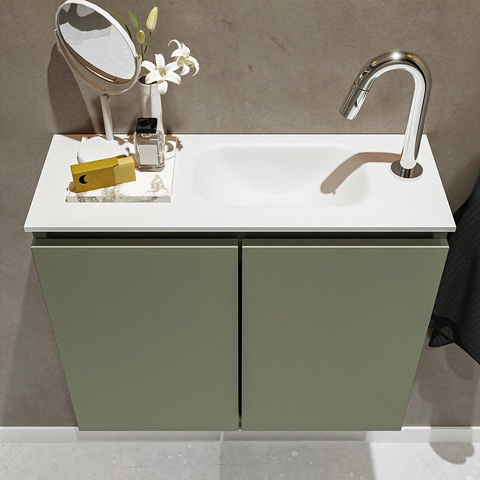 MONDIAZ TURE Kit lave-mains - 60x23x50cm - 1 trou de robinet - 2 portes - armée mate - Lavabo à droite - Acrylique Blanc