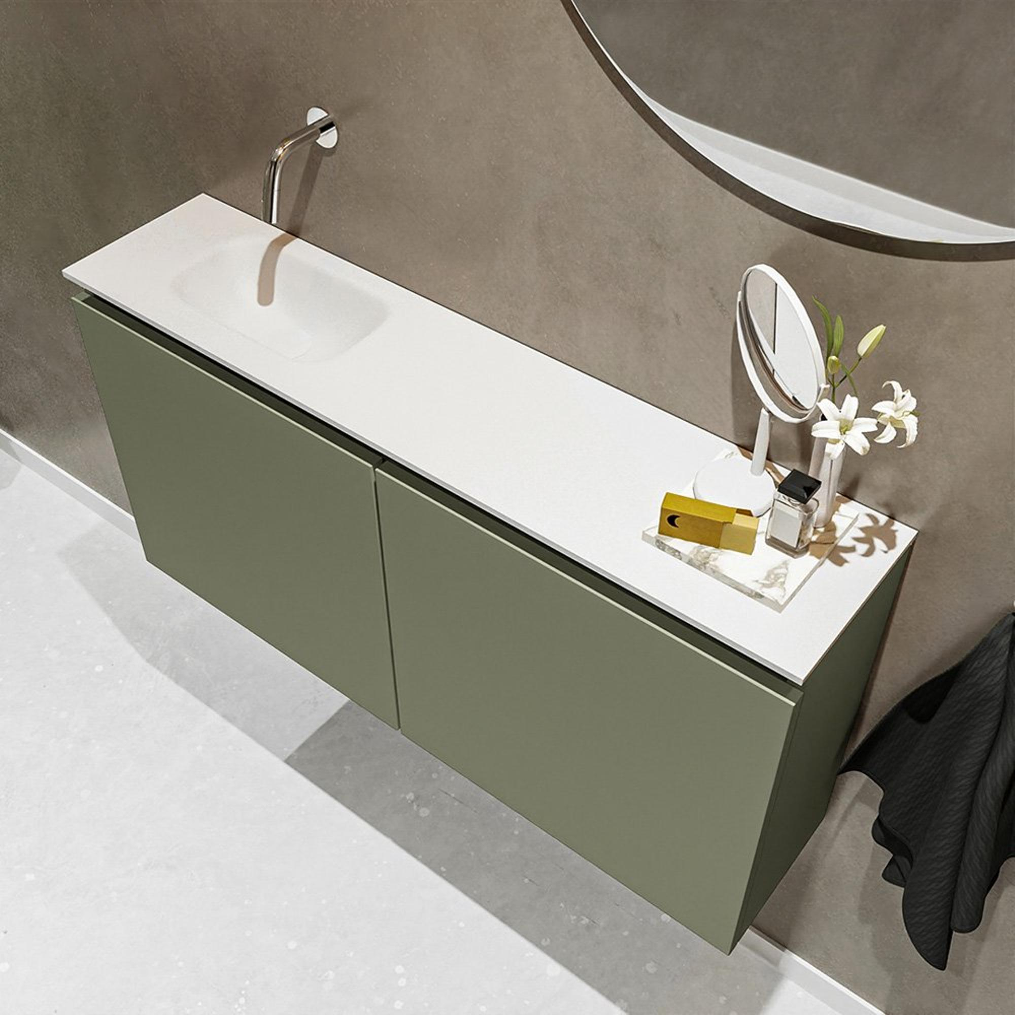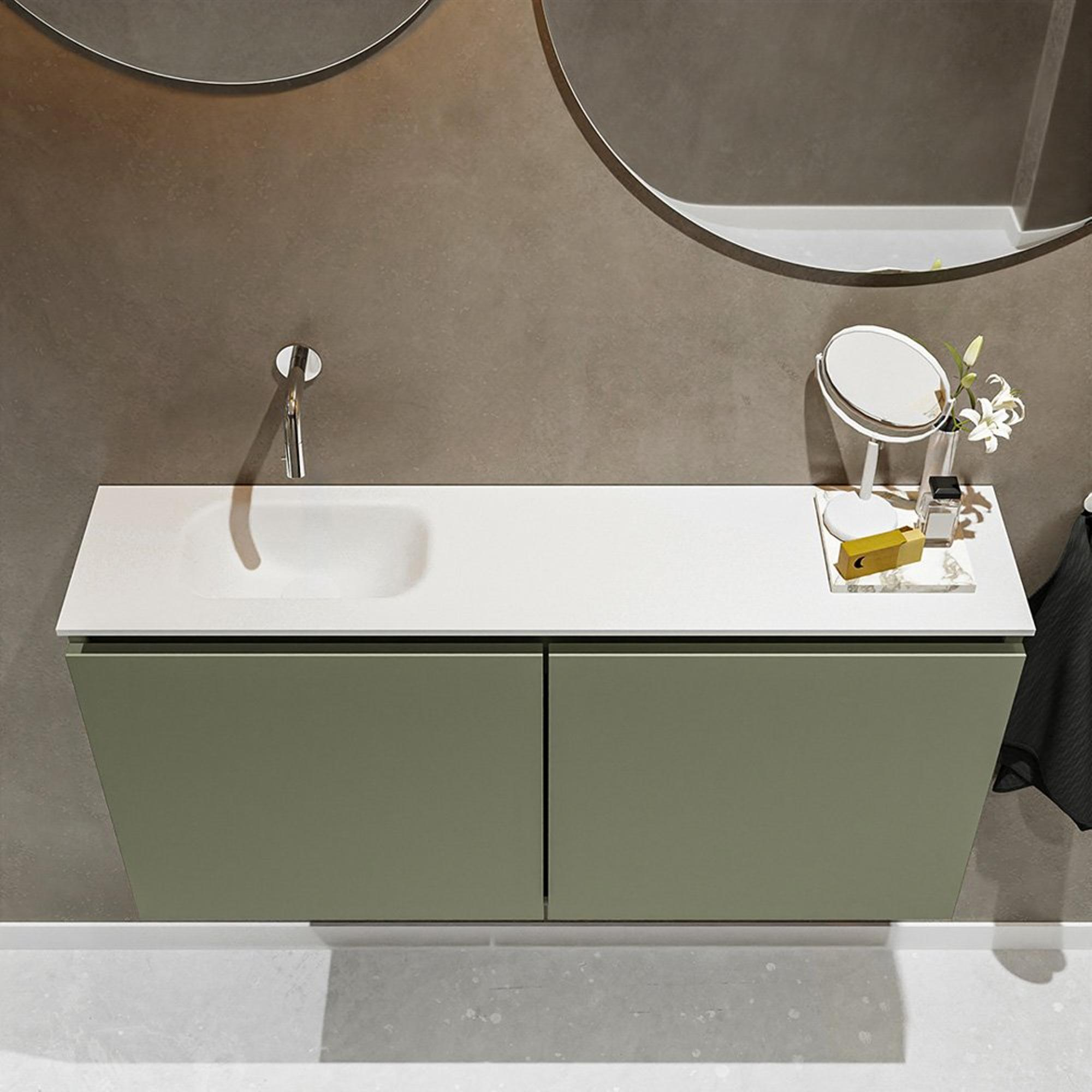 MONDIAZ TURE Kit lave-mains - 100x23x50cm - 0 trou de robinet - 2 portes - army mat - Lavabo gauche - Acrylique Blanc