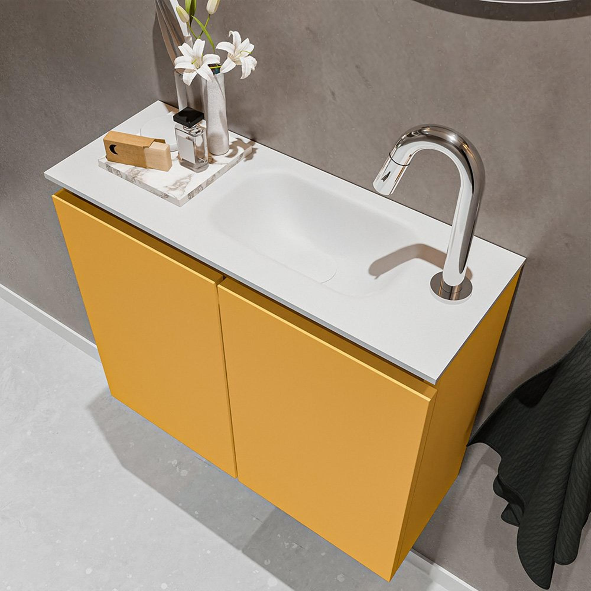 MONDIAZ TURE Kit lave-mains - 60x23x50cm - 1 trou de robinet - 2 portes - ocre mat - Lavabo à droite - Solid Surface Blanc