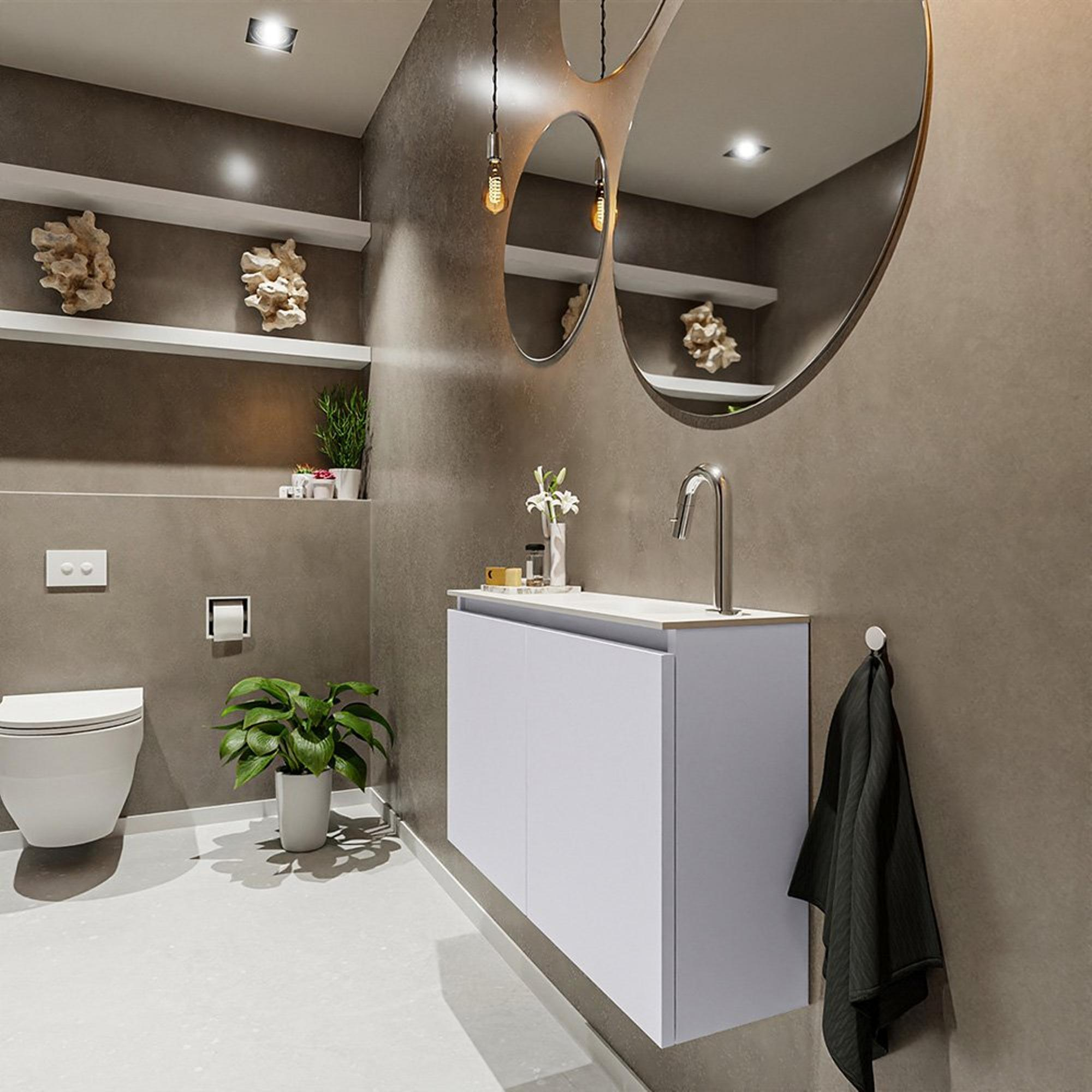 MONDIAZ TURE Kit lave-mains - 80x23x50cm - 1 trou de robinet - 2 portes - cale mat - Lavabo à droite - Solid Surface Blanc