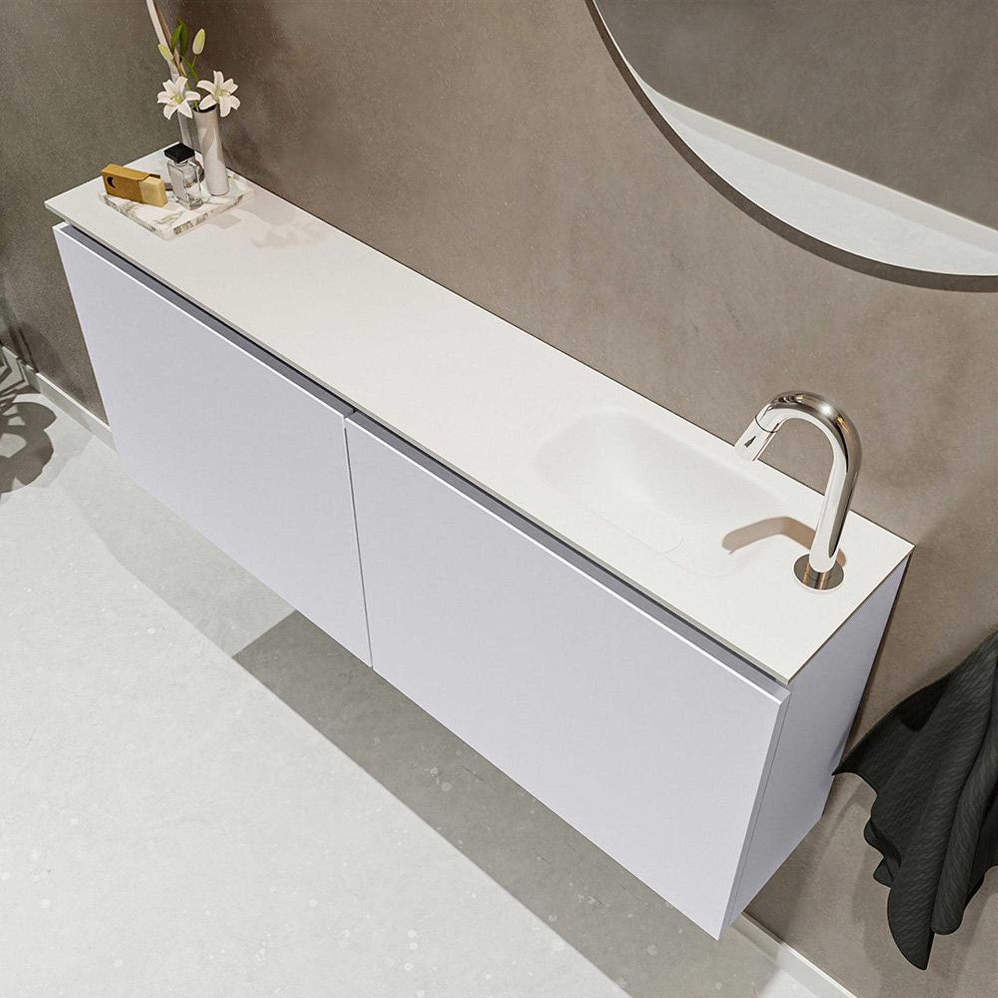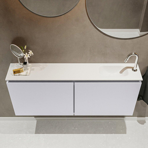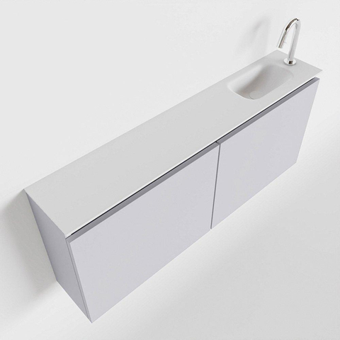 MONDIAZ TURE Kit lave-mains - 120x23x50cm - 1 trou de robinet - 2 portes - cale mat - Lavabo à droite - Solid Surface Blanc