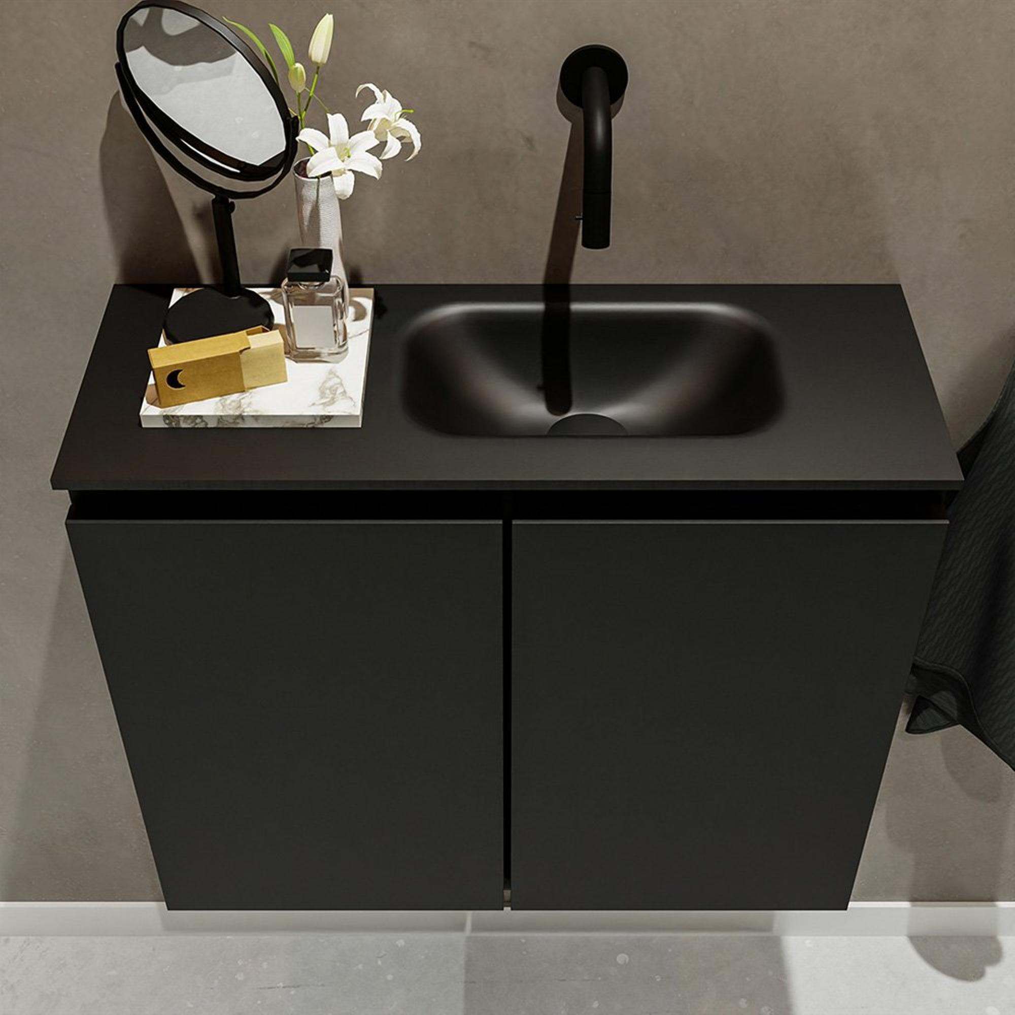 MONDIAZ TURE Kit lave-mains - 60x23x50cm - 0 trous de robinet - 2 portes - urban mat - Lavabo à droite - Solid Surface Noir