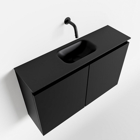 MONDIAZ TURE Kit lave-mains - 80x23x50cm - 0 trous de robinet - 2 portes - urban mat - Lavabo centré - Solid Surface Noir