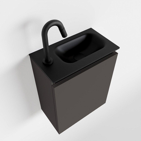 MONDIAZ TURE Kit lave-mains - 40x23x50cm - 1 trou de robinet - 1 porte - gris foncé mat - Lavabo à droite - Solid Surface Noir