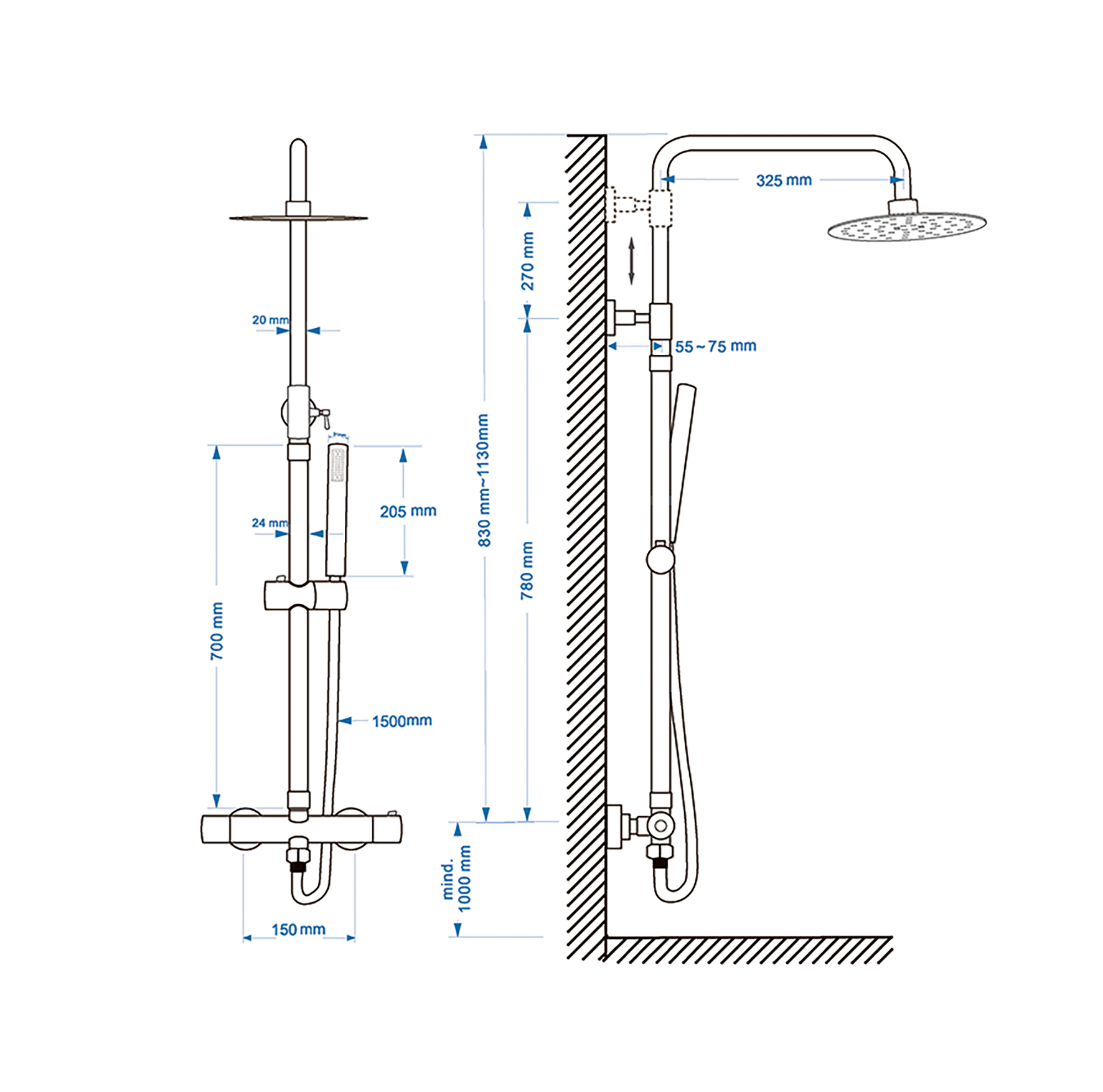 | Diamètre tête de douche | 11 à 20 cm |
