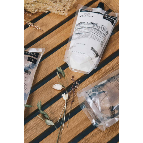 Si vous utilisez déjà un beau distributeur en verre ou réutilisable dans la salle de bains, la cuisine ou les toilettes, cette recharge s’y adapte parfaitement. Vous conservez l’apparence élégante de vos accessoires, tout en remplissant aisément le contenu lorsque cela est nécessaire. Les 500 ml généreux remplissent votre flacon à plusieurs reprises, ce qui n’est pas seulement pratique, mais aussi économique à l’usage. Le parfum de linge frais donne à chaque pièce une impression soignée et propre et se marie à merveille aussi bien avec les salles de bains design modernes qu’avec les intérieurs plus classiques. Vous combinez ainsi esthétique, facilité d’utilisation et durabilité dans un choix simple.