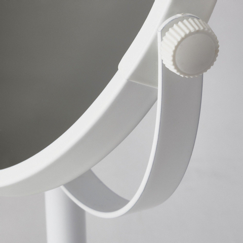 Si vous recherchez un miroir pratique mais néanmoins élégant pour votre salle de bains, vos toilettes ou votre coiffeuse, un miroir compact grossissant est un choix judicieux. Grâce au modèle sur pied, vous le placez exactement là où vous avez besoin d’une visibilité supplémentaire : à côté du lavabo, sur une étagère dans la salle de bains ou même dans la chambre, près de votre coiffeuse. La combinaison d’une image miroir claire et d’un grossissement ciblé rend votre routine quotidienne, du rasage à l’application du maquillage, beaucoup plus précise et confortable. Grâce au blanc neutre, cet accessoire s’intègre sans effort dans les salles de bains modernes, minimalistes et intemporelles, tandis que le design rond apporte une touche douce et accueillante à la pièce.