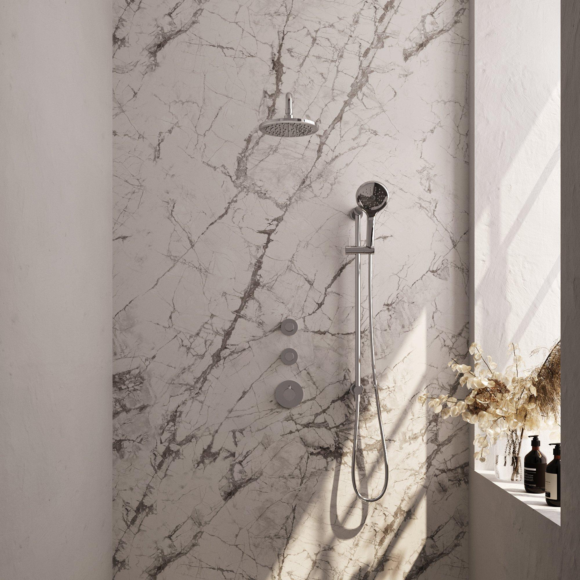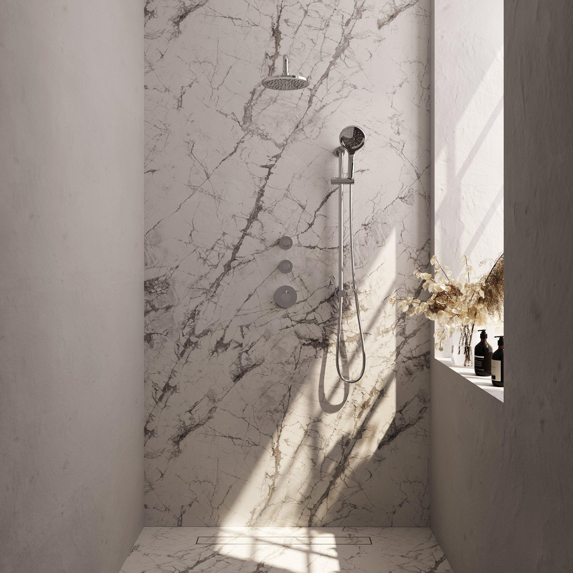 Vivez un luxe ultime avec le Brauer Chrome Edition ensemble de douche de tête. Les boutons lisses et la finition chromée procurent une sensation d'opulence et de confort. La pomme de douche de 20cm assure une répartition uniforme de l'eau et une expérience de pluie relaxante. La partie encastrée garantit une finition épurée dans la salle de bains, ce qui rend cet ensemble non seulement fonctionnel mais aussi un ajout esthétique.
