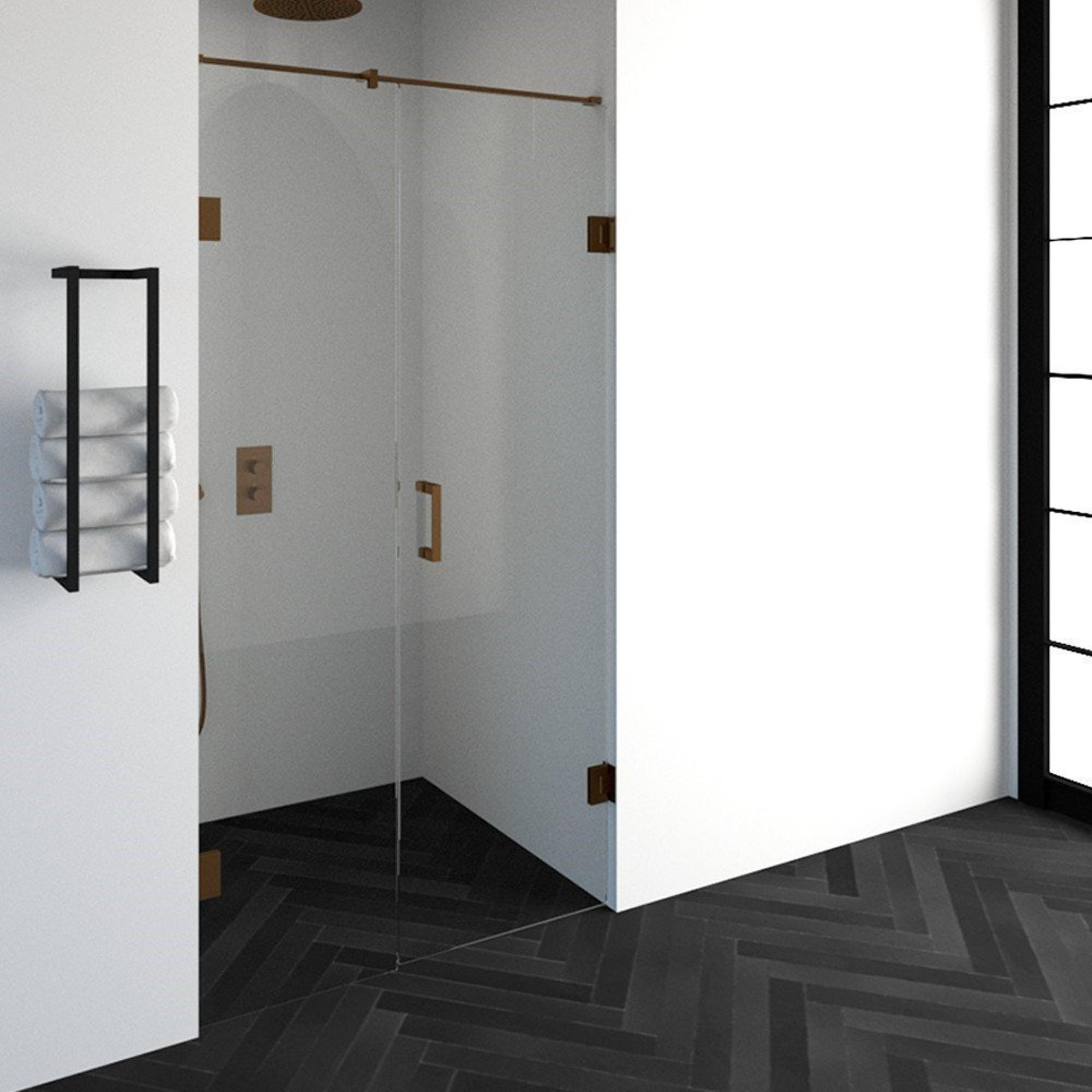 Optez pour une finition élégante dans la salle de douche avec cette porte de douche BRAUER Create en Cuivre. Idéale pour la salle de bain moderne et luxueuse. Fini le rideau de douche collant sur votre corps ! Ainsi, vous gardez votre salle de bain au sec avec style tout en profitant d'une douche agréable. Inclus traitement du verre.