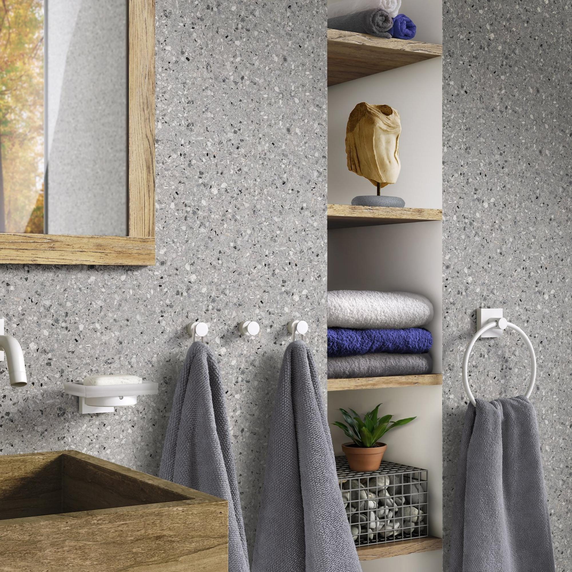 Grâce au design en 2 pièces, vous pouvez suspendre plusieurs serviettes en même temps, ce qui permet de garder votre salle de bains organisée et ordonnée. Les dimensions compactes de 1,9x1,9x2,5cm occupent un espace minimal tout en offrant suffisamment de place pour accrocher des serviettes. La finition blanc mat ajoute une touche de fraîcheur à l'aménagement de la salle de bains.