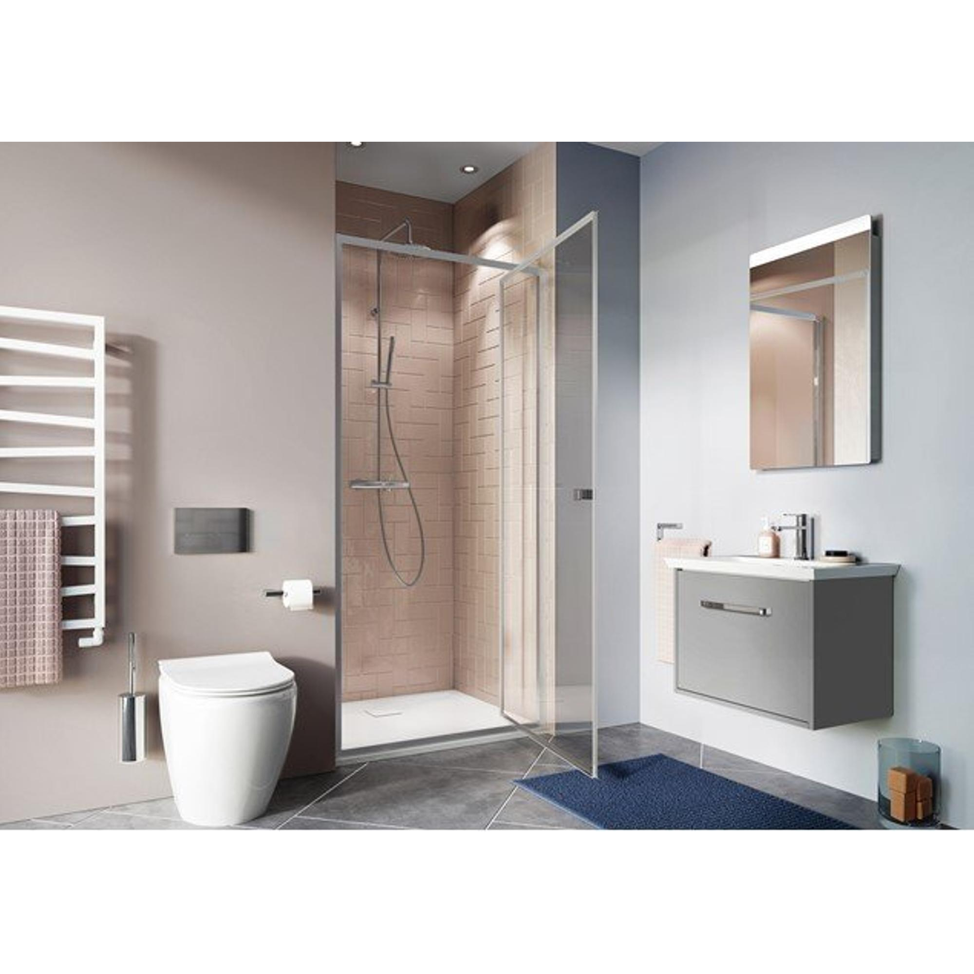 Les portes pivotantes Crosswater Clear 6 sont disponibles en différentes largeurs de 70cm à 100cm, toutes avec une hauteur de 195cavec Le verre trempé cristallin de 6 mm d'épaisseur est un ajout de haute qualité à toute salle de bain ou espace douche.
