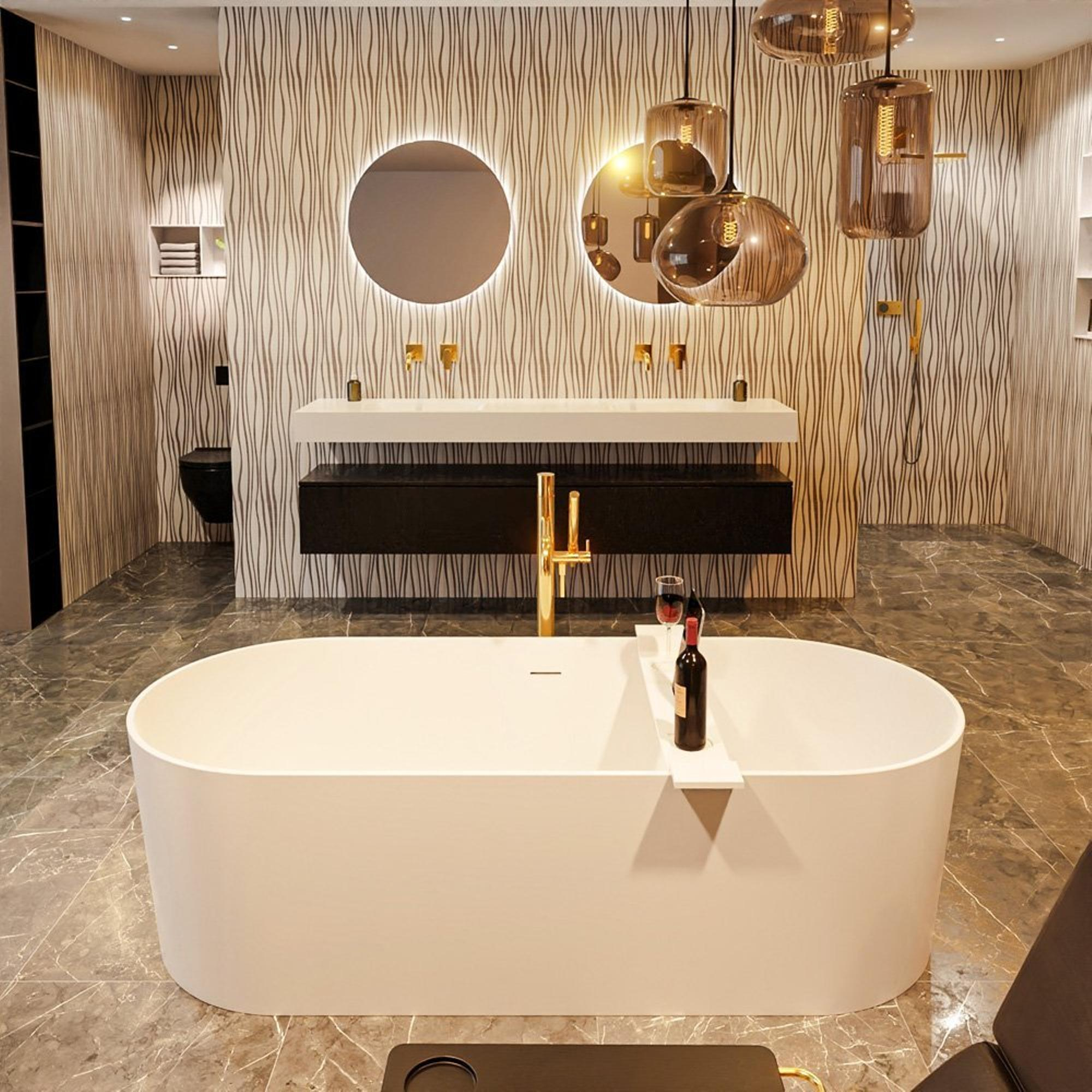La couleur mate talc est une teinte blanche douce qui donne immédiatement à votre salle de bains une apparence sereine et luxueuse. En combinaison avec les lignes ovales et fluides, il en résulte une baignoire au look minimaliste mais qui dégage tout de même de la chaleur. La finition mate se marie parfaitement avec des carreaux modernes, un effet béton, des accents en bois et des robinets noirs ou en métal brossé. Comme la couleur est intemporelle, vous pouvez facilement adapter le style de votre salle de bains à l’avenir sans que la baignoire jure avec l’ensemble. Vous créez ainsi, avec un seul choix, une base durable pour toute la conception de votre salle de bains.