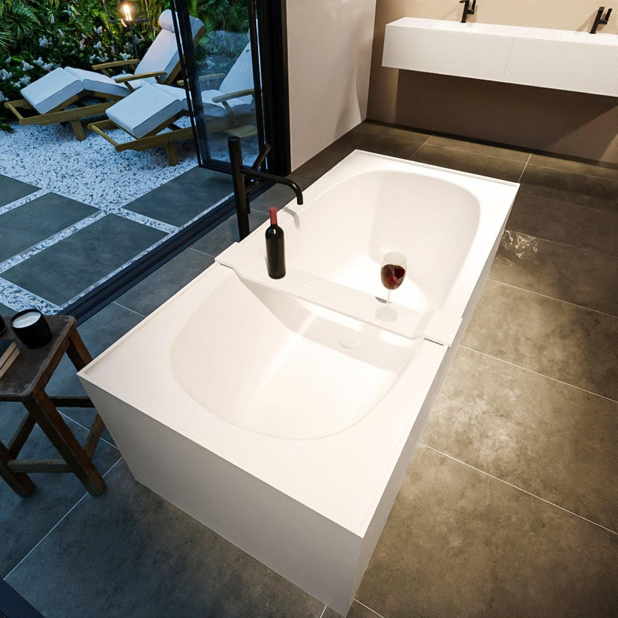 La baignoire est fabriquée en solid surface, un matériau massif de haute qualité, réputé pour son apparence épurée et sans joints ainsi que pour sa longue durée de vie. Sa structure dense et non poreuse signifie que la saleté et les résidus de savon adhèrent moins facilement, de sorte que la surface reste hygiénique et facile à nettoyer. Un chiffon doux et un nettoyant doux suffisent généralement pour lui redonner un aspect comme neuf. De plus, le solid surface est chaleureux et agréable au toucher, ce qui contribue au confort en position allongée. Autre avantage : le matériau résiste bien à un usage quotidien et les petites irrégularités sont moins visibles dans la structure mate, ce qui vous permet de profiter pendant des années d’un aspect soigné.