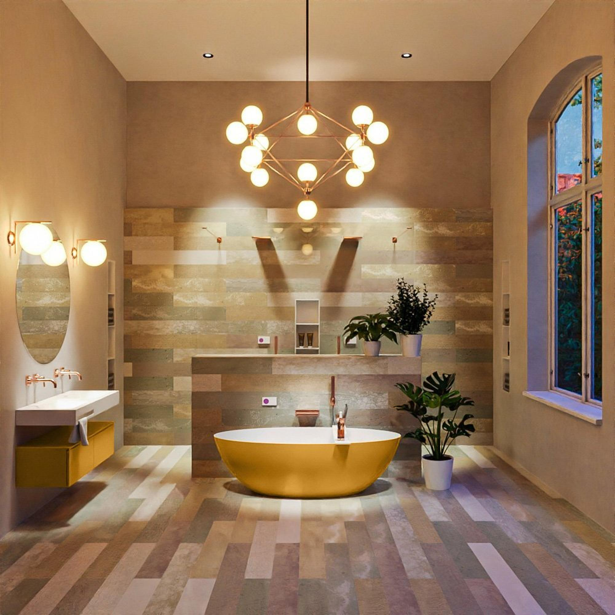 La face extérieure dans la couleur ocher mat donne immédiatement du caractère et de la chaleur à votre salle de bains. Cette teinte se combine à merveille avec des matériaux naturels tels que le bois, les carreaux effet béton et les robinets noirs ou brossés. À l'intérieur, la baignoire est réalisée dans la couleur talc : une teinte claire et douce qui fait paraître votre eau limpide et invitante. Il en résulte un contraste élégant qui respire la sérénité, tout en montrant un peu plus d'audace qu'une baignoire entièrement blanche. Placez-la au centre de la pièce comme élément phare, ou contre un mur avec de beaux carreaux ou une niche ; les lignes arrondies et la finition mate la rendent photogénique sous tous les angles.