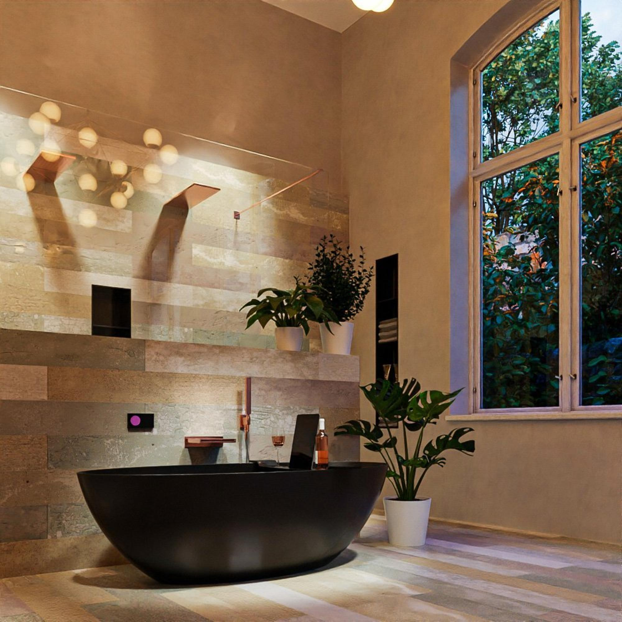 La couleur mate Urban donne à cette baignoire une apparence puissante et contemporaine. Les faces extérieure et intérieure noires mates créent une ambiance luxueuse digne d’un hôtel, surtout en combinaison avec des robinets noirs ou au contraire avec des teintes métalliques contrastées comme l’or brossé ou le chrome. Comme la finition est mate, l’ensemble paraît doux et raffiné plutôt que tape-à-l’œil, ce qui permet de combiner joliment la baignoire avec des carreaux en pierre naturelle sobres, un aspect béton ou des tons bois chaleureux. Elle forme ainsi un point central élégant dans la pièce et rehausse en un clin d’œil l’ensemble de la salle de bains.