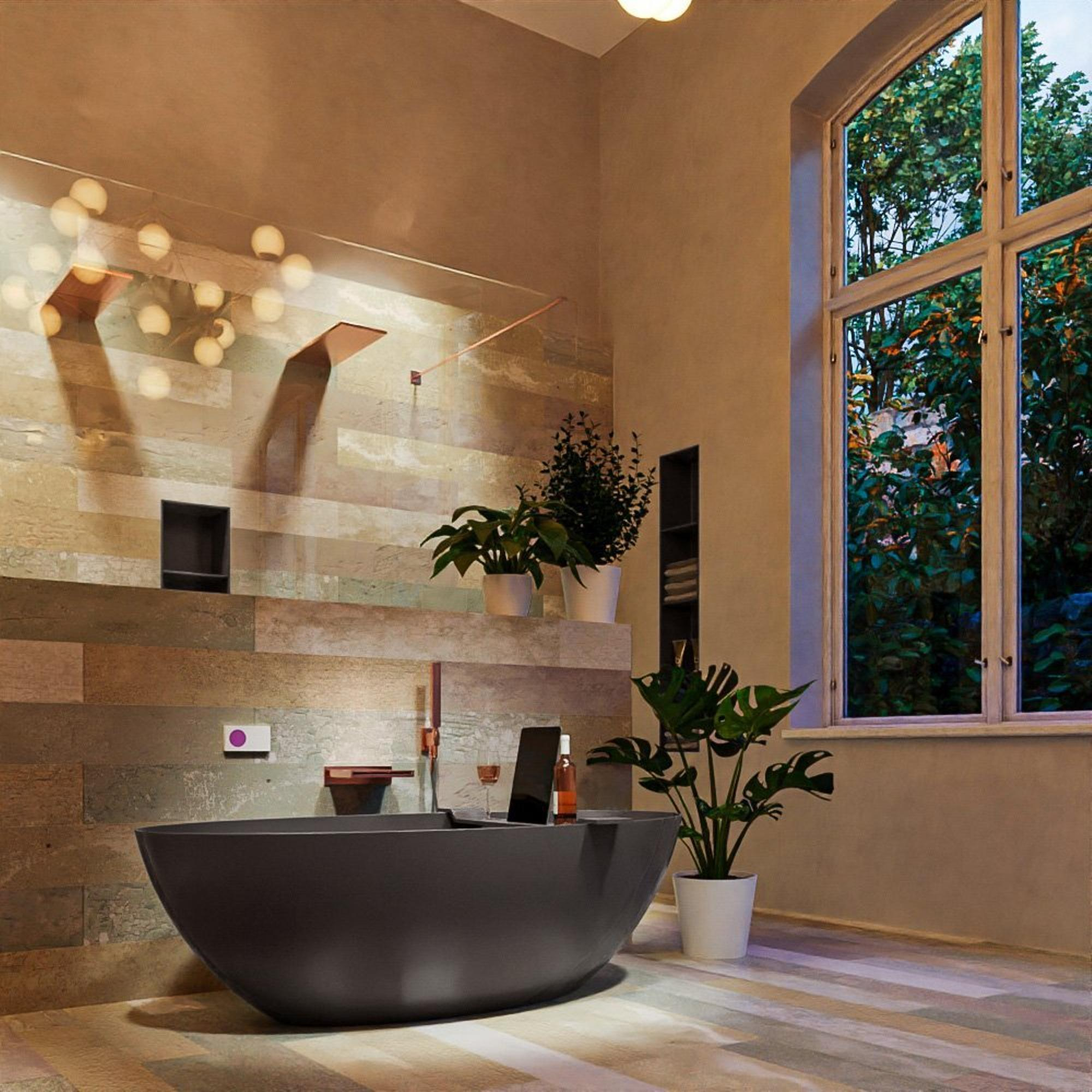 Couleur dark grey mate pour une salle de bains design et luxueuse