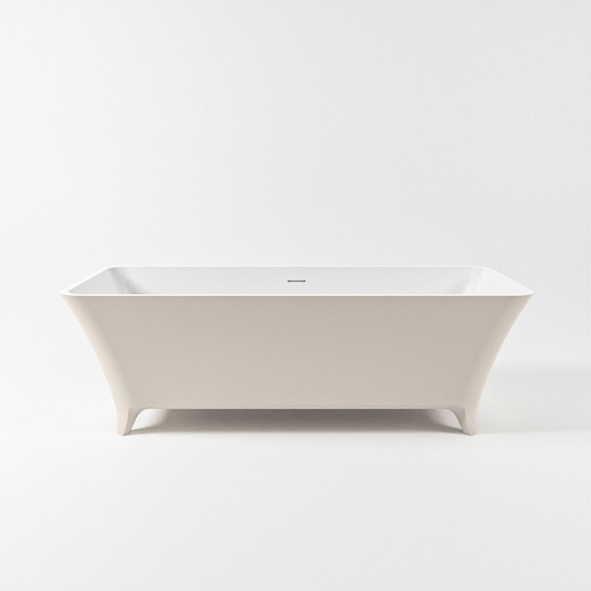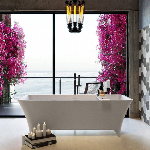 - Baignoire autoportante dans une forme rectangulaire épurée avec une ligne intérieure douce et confortable.