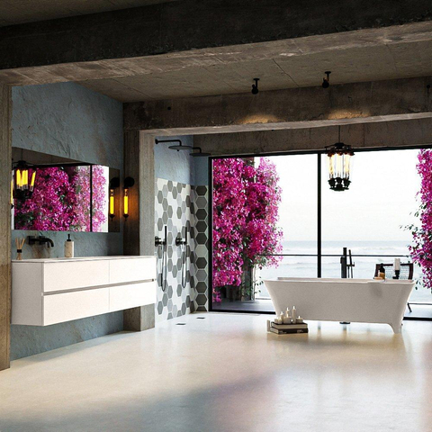 - Adaptée aux configurations autoportantes et semi-autoportantes dans une grande variété de styles de salles de bains.