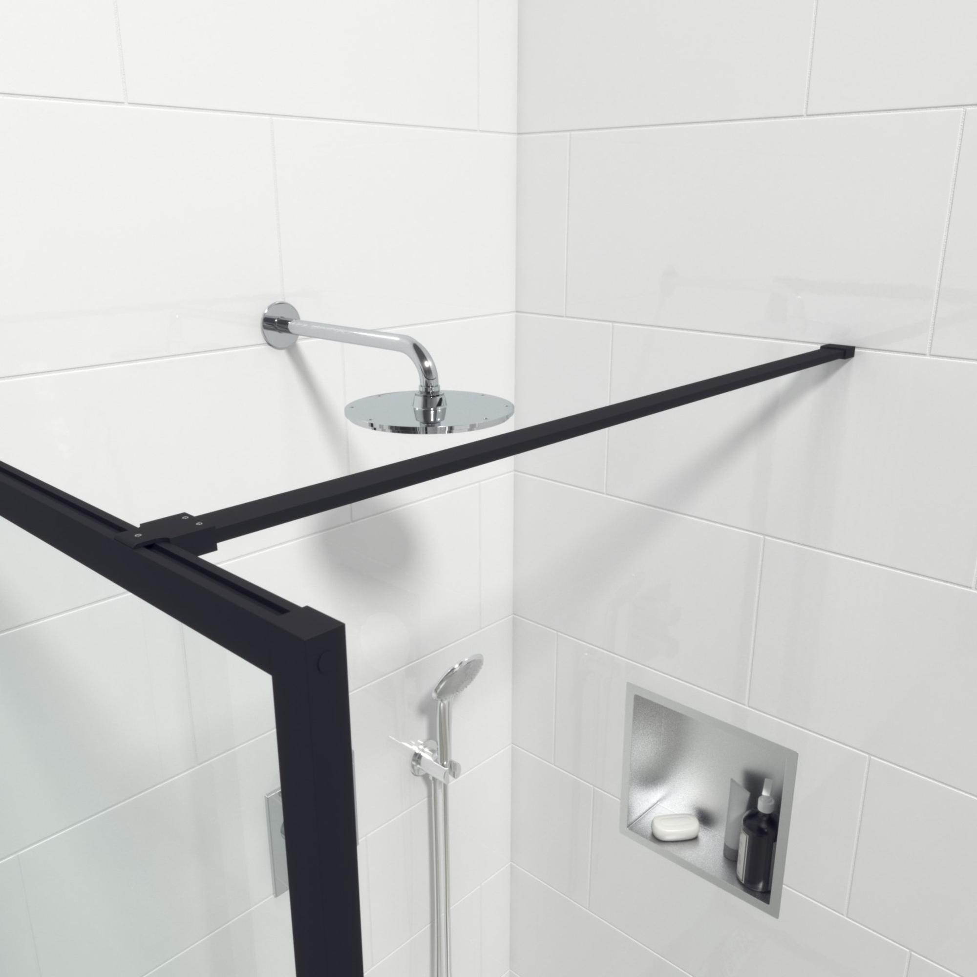 Entrez dans une salle de bains qui respire la tranquillité et le style grâce à cette douche à l'italienne. Avec ses dimensions généreuses et son apparence intemporelle, elle transforme votre coin douche en une oasis de confort et d'élégance. Le verre de sécurité mat ne procure pas seulement une intimité subtile, mais aussi une douce lumière qui agrandit visuellement l'espace. Le cadre tout autour en noir mat apporte une touche moderne et épurée qui s'harmonise aisément avec divers styles de salle de bains. Grâce au traitement anti-calcaire, le verre reste clair plus longtemps et facile à nettoyer, vous laissant plus de temps pour profiter de votre moment de douche. Cette douche à l'italienne allie fonctionnalité et apparence raffinée, faisant de votre salle de bains un lieu où vous commencez et terminez chaque jour avec plaisir.