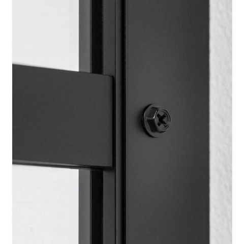 Lors de la conception, une attention particulière a été portée à l’utilisation quotidienne et à une finition soignée. La paroi latérale peut être installée aussi bien à gauche qu’à droite et convient à un montage dans l’alignement d’une porte assortie, ce qui vous offre de la flexibilité dans l’agencement de votre salle de bains. Les détails industriels sont volontairement appliqués uniquement sur la face extérieure du verre. À l’intérieur, la surface est entièrement plane, sans vis saillantes ni rebords inutiles. Cela offre une sensation agréable sous la douche et rend le nettoyage beaucoup plus simple. De plus, la barre de stabilisation est ingénieusement fixée et autant que possible dissimulée, afin que vous profitiez d’un résultat final épuré et soigné.