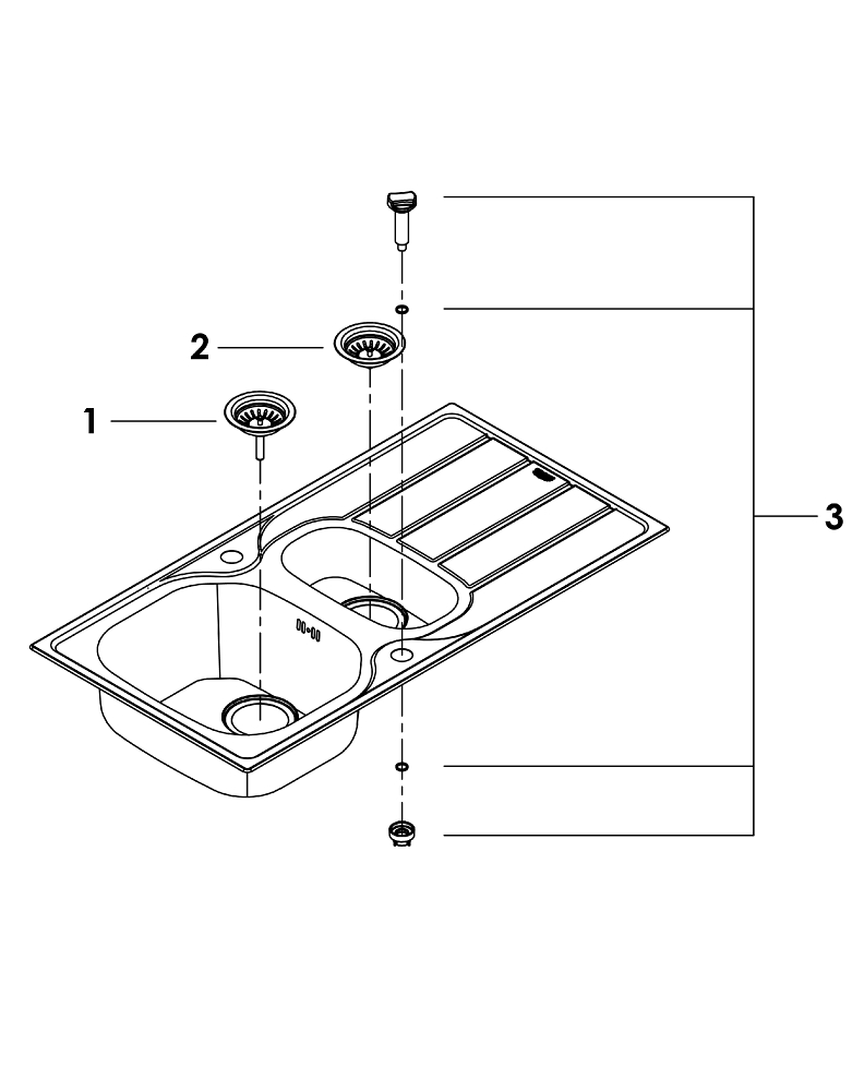 évacuation : Ø 3,5" / 90 mm grille de vidage avec évacuation automatique