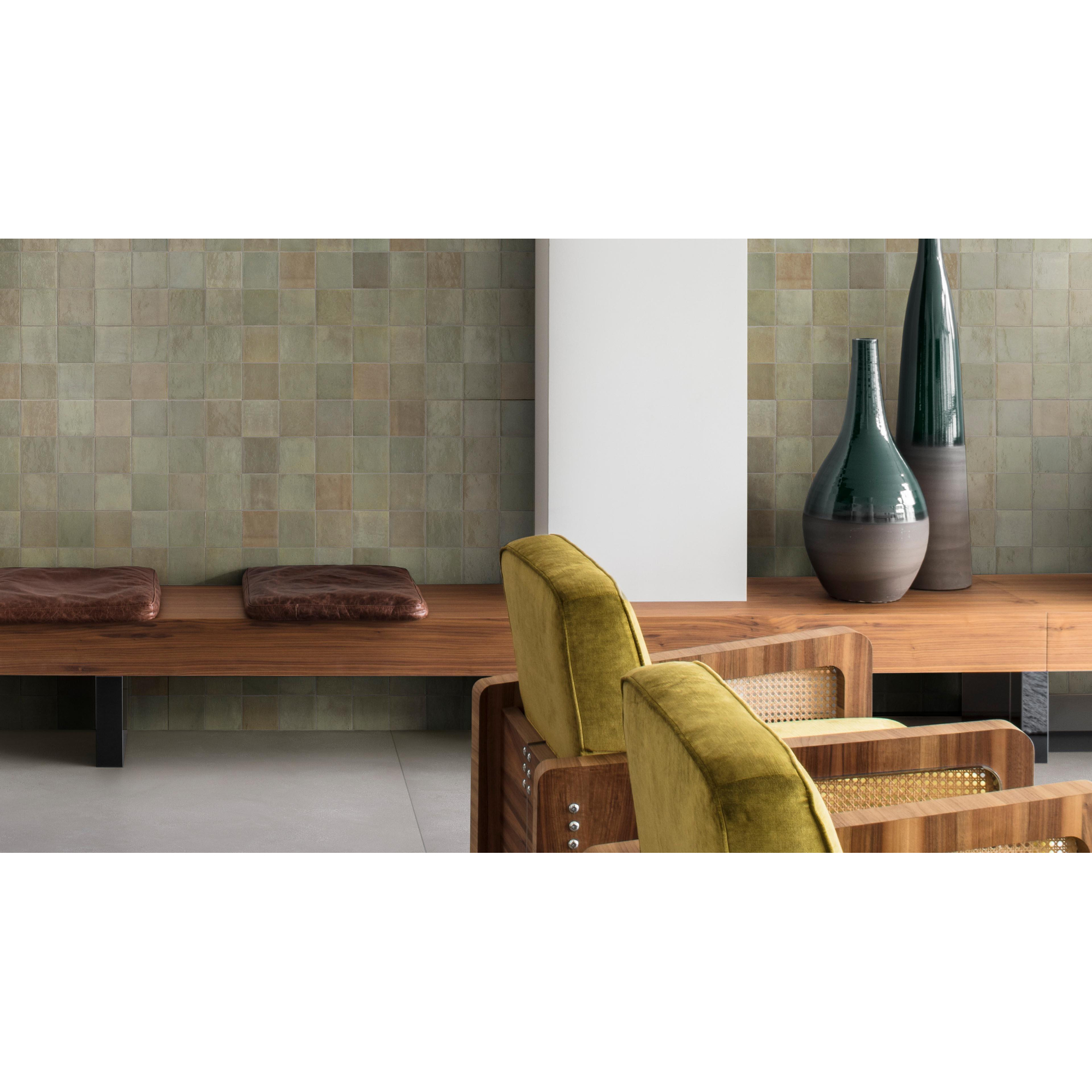 Le style Zellige est connu pour ses subtiles nuances de couleur, sa variation de brillance et son aspect légèrement ondulé, et c’est exactement ce que l’on retrouve dans ce carrelage mural. Chaque carreau présente une nuance et une réflexion légèrement différentes, ce qui fait vivre votre mur dès que la lumière s’y pose. Cela le rend idéal si vous souhaitez créer une ambiance luxueuse, presque artisanale, sans compromis sur la qualité et la facilité d’entretien. La couleur vert sauge est à la fois chaleureuse et rafraîchissante et donne immédiatement plus de profondeur à votre salle de bains ou à vos toilettes. Que vous revêtiez un mur entier ou une petite bande derrière la vasque, vous obtenez toujours une apparence riche et haut de gamme qui restera belle pendant des années.Format pratique pour des motifs de pose créatifs