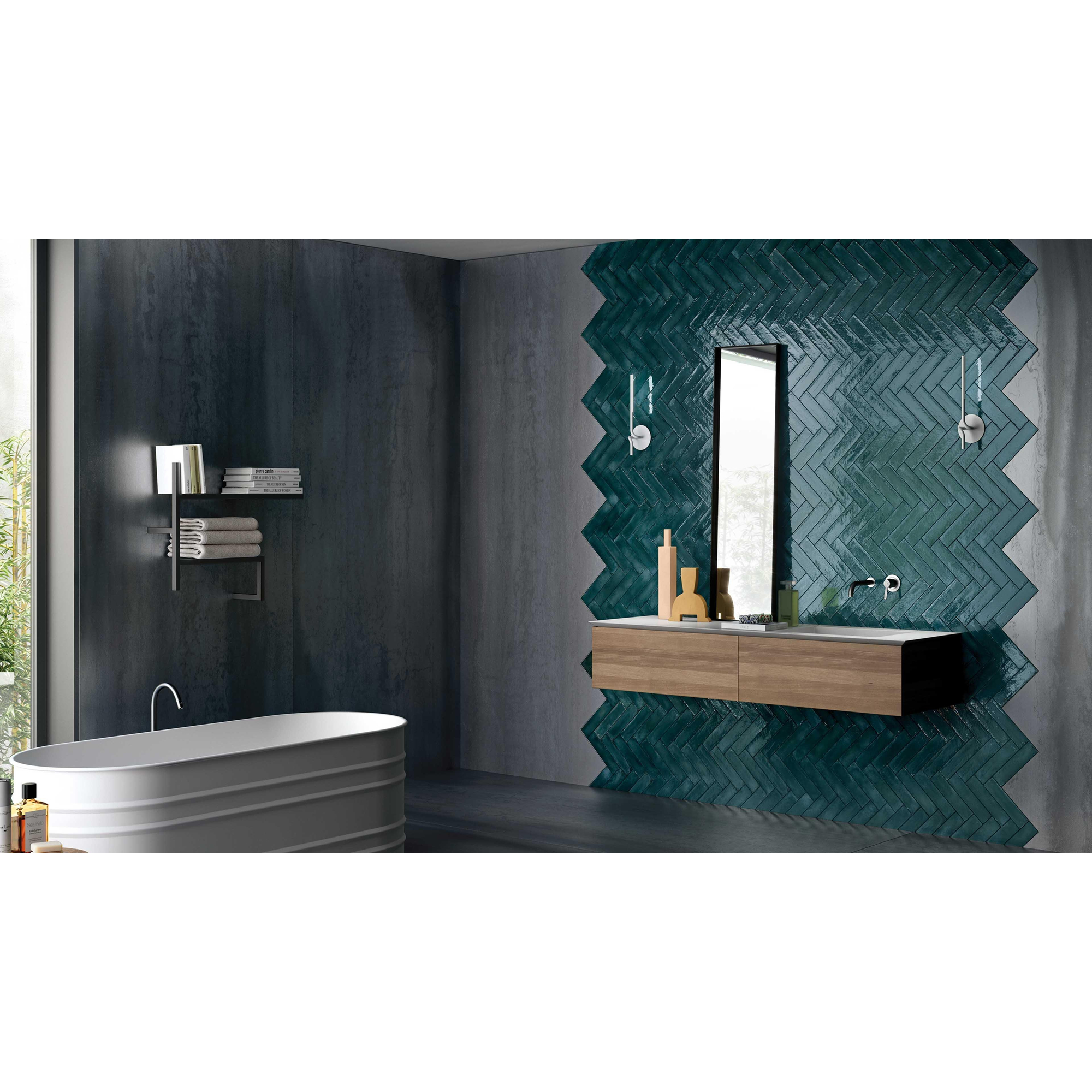 La combinaison de la finition brillante et de la couleur verte profonde donne immédiatement à vos murs une atmosphère de haute qualité, presque comme à l’hôtel. Le format élancé de 6x24 cm crée un jeu de lignes raffiné, surtout si vous optez pour un motif de pose ludique comme la pose en chevron. Vous pouvez ainsi créer un effet remarqué sur une surface relativement réduite, par exemple derrière le lavabo, dans la douche ou comme mur d’accent derrière la baignoire. La couleur “Green” se prête parfaitement à un style moderne, industriel ou au contraire botanique, en particulier en combinaison avec des accents noirs, en laiton ou en inox. Vous apportez ainsi du caractère et de la sérénité en un seul geste dans la conception de votre salle de bains.Qualité céramique : solide, inaltérable et pratique