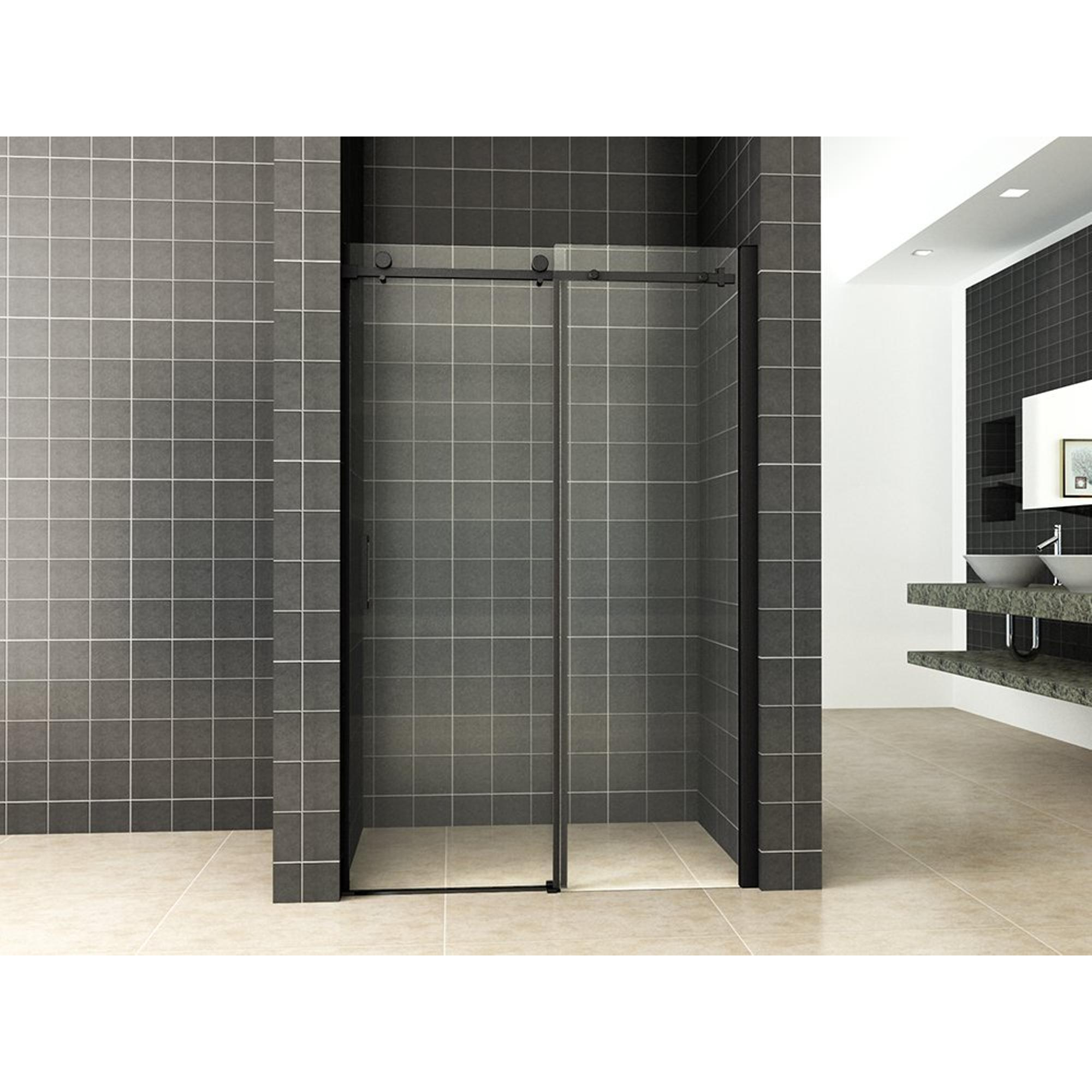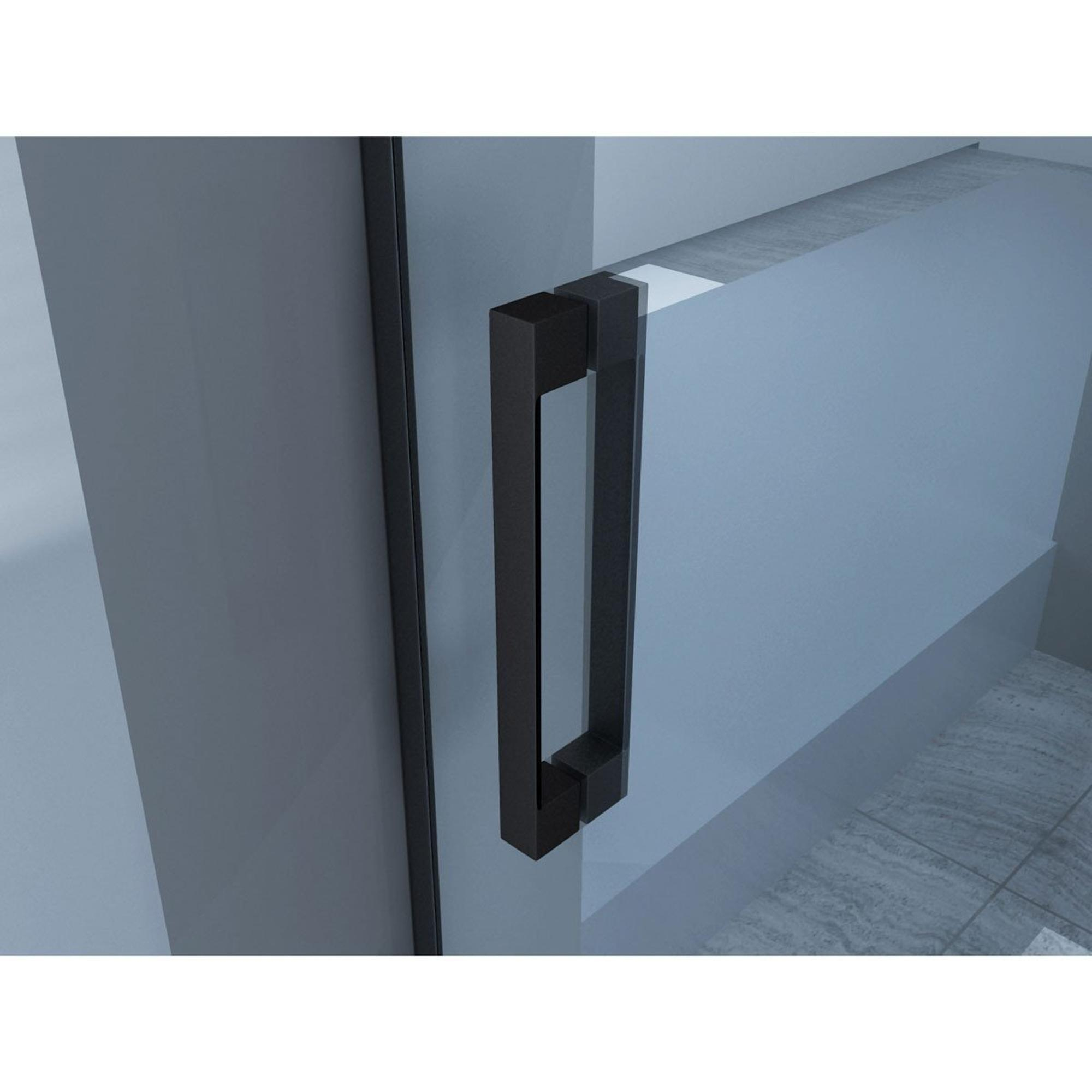 Cette porte coulissante pour niche est un excellent choix pour ceux qui souhaitent combiner une apparence épurée et moderne avec une utilisation pratique dans la salle de bains. Grâce au verre clair avec une finition noire mate, cette porte s’intègre parfaitement dans un style de salle de bains contemporain, surtout dans une niche ou en combinaison avec un panneau latéral. La porte convient aux niches jusqu’à 110 cm de large et peut être installée à gauche ou à droite, offrant ainsi une flexibilité lors de l’installation. Que vous ayez un coin douche compact ou une niche spacieuse, cette porte assure une fermeture élégante et fonctionnelle qui donne à votre salle de bains une allure luxueuse. La porte coulissante fonctionne en douceur grâce aux roulettes robustes en acier inoxydable et est facile à manipuler, ce qui rend son utilisation quotidienne agréable. De plus, le revêtement spécial NANO aide à garder le verre propre et clair plus longtemps, réduisant ainsi le temps consacré à l’entretien.