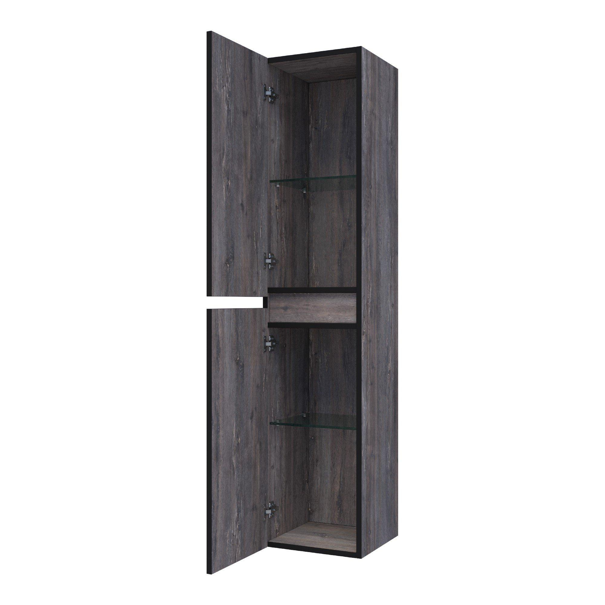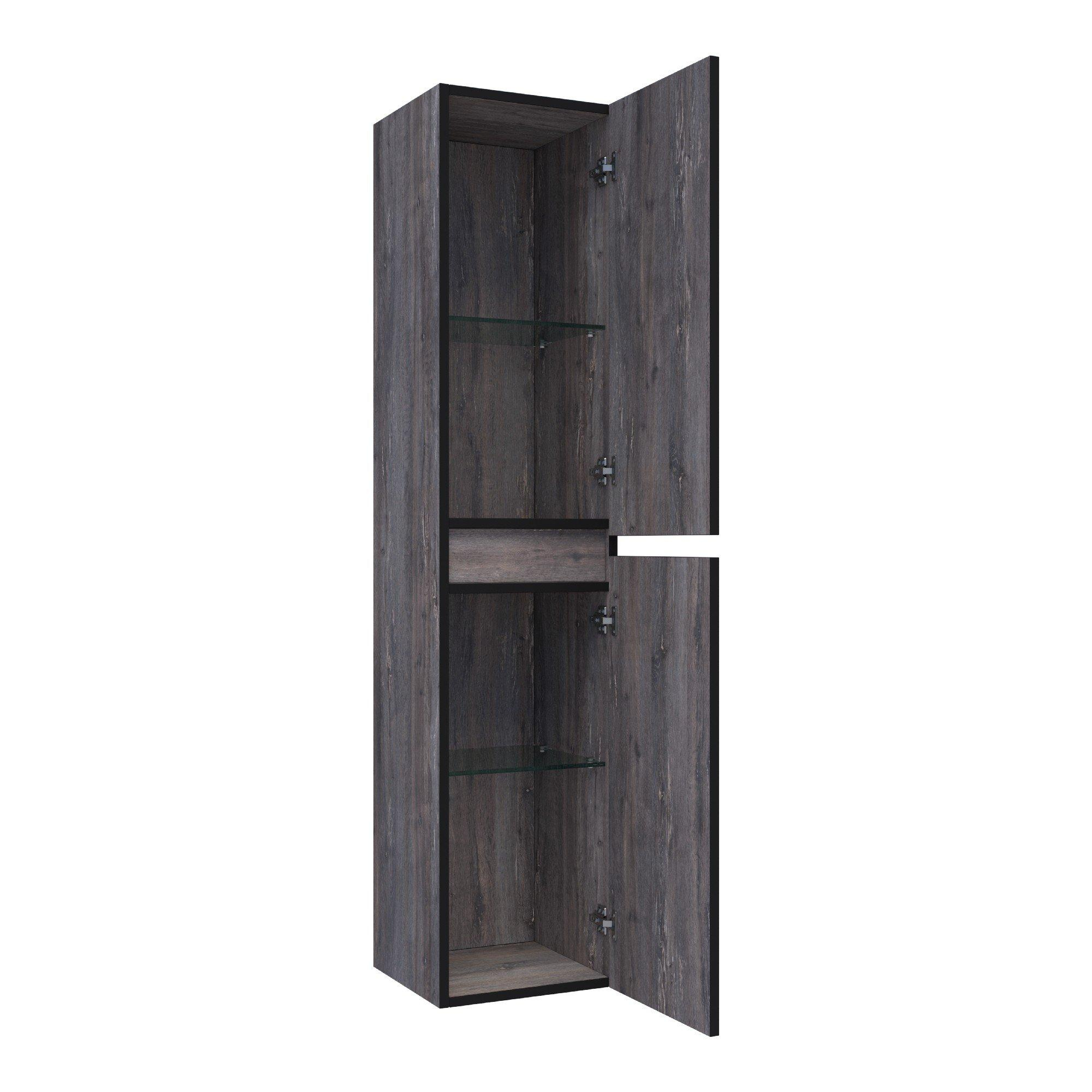Le matériau MFC avec décor bois de couleur Grey Canyon (driftwood) confère à l’armoire une apparence naturelle et chaleureuse, sans que vous deviez faire de compromis sur la facilité d’entretien. La teinte bois grise se marie à merveille avec des carreaux effet béton, des murs blancs ou, au contraire, des couleurs plus profondes comme l’anthracite ou le noir. Vous pouvez ainsi créer facilement une atmosphère de style hôtel dans votre propre salle de bains. Le MFC est stable et bien résistant à une utilisation normale dans la salle de bains, ce qui permet à l’armoire de rester belle longtemps. Les façades sans poignées renforcent le caractère calme et minimaliste. Associez cette armoire haute à un meuble de salle de bains assorti de la même teinte de bois pour un ensemble harmonieux, ou utilisez-la comme meuble d’accent indépendant dans un aménagement neutre.