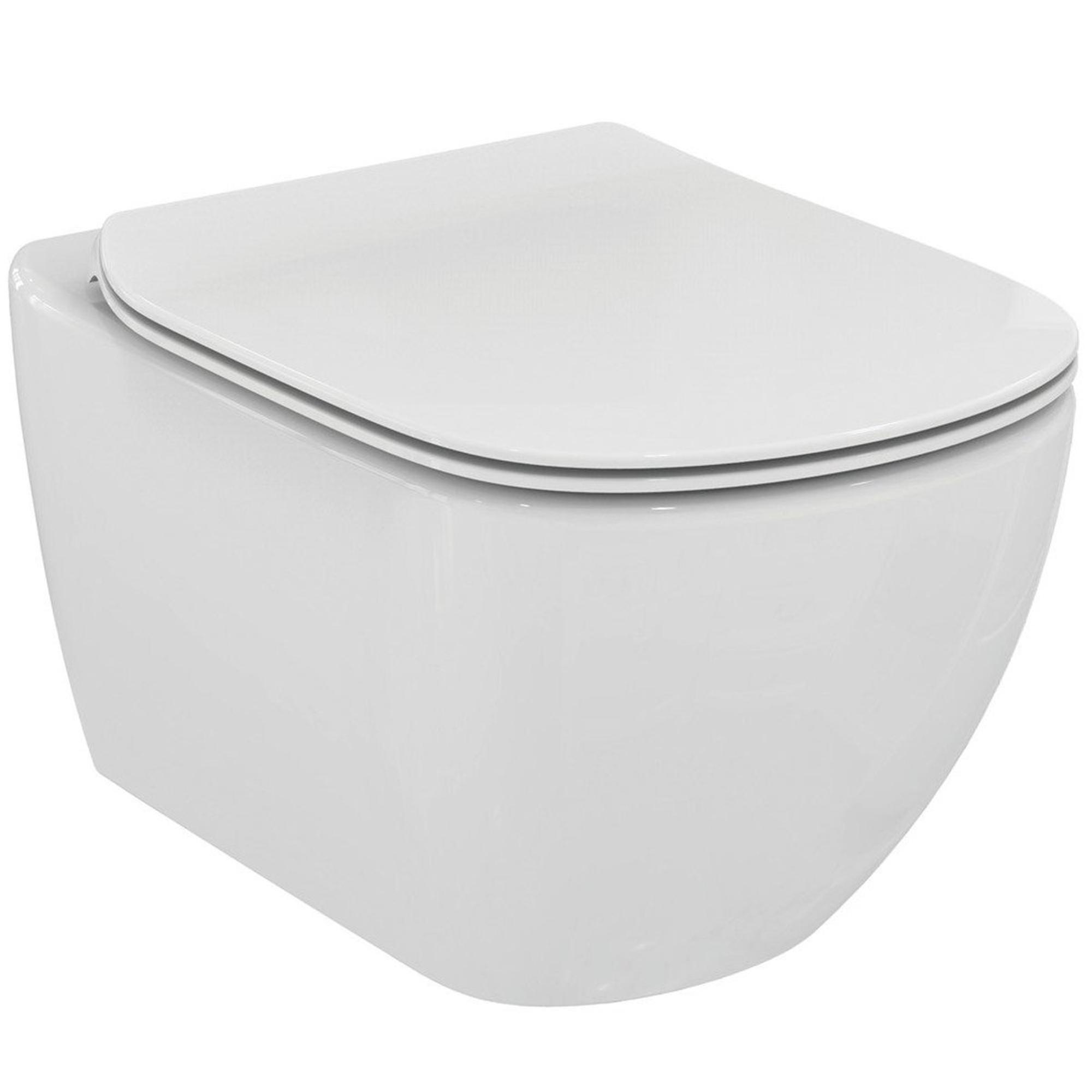 Ideal Standard Tesi Aquablade - WC suspendu - avec abattant et couvercle à fermeture lente mince - incluant kit de fixation - fixation cachée - blanc mat