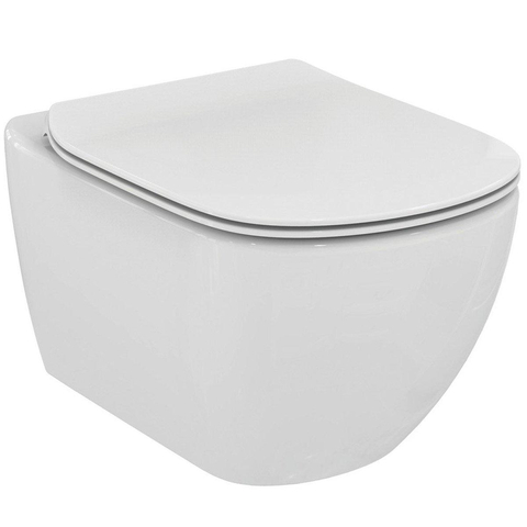 Ideal Standard Tesi Aquablade - WC suspendu - avec abattant fin à fermeture douce et couvercle - incluant kit de fixation - fixation cachée - blanc mat