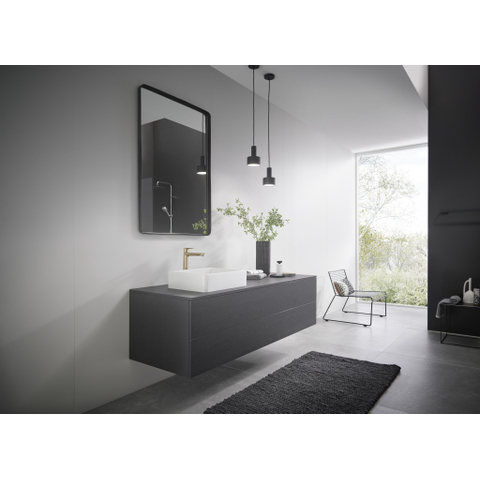 La finition bronze brossé confère au robinet une apparence chaude et luxueuse qui s’intègre sans effort dans les salles de bains modernes comme classiques. Cette couleur unique crée un point focal subtil mais remarquable qui donne à votre salle de bains une touche personnelle et raffinée. Grâce au design minimaliste avec poignée droite et bec fixe, le robinet dégage simplicité et élégance. Vous créez ainsi un ensemble harmonieux qui non seulement est beau à voir, mais s’adapte parfaitement à divers styles d’intérieur.