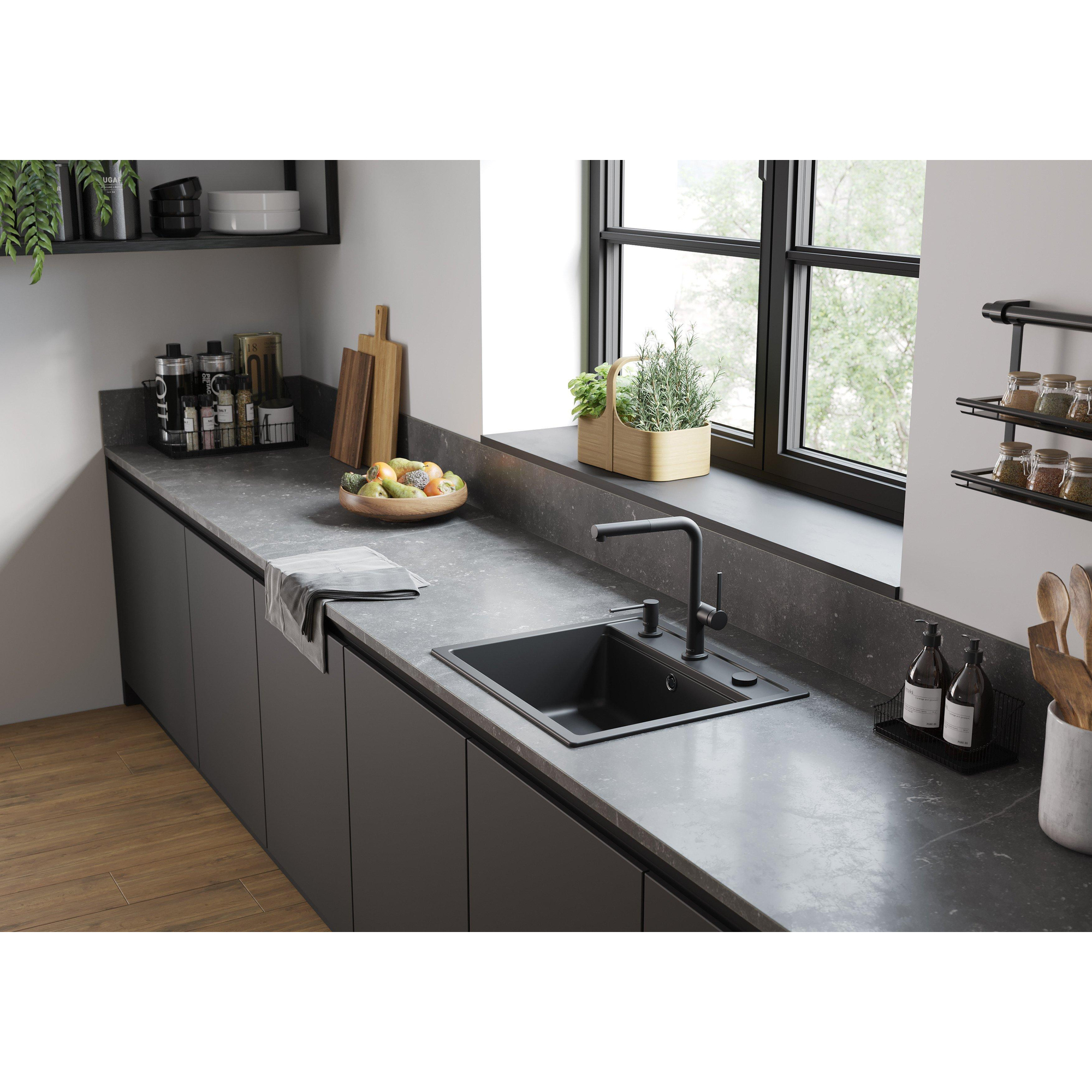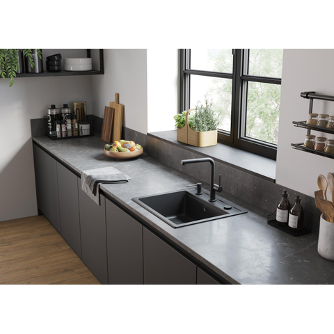 Le design de ce robinet est un exemple d'élégance moderne. La finition mat noir donne un aspect robuste mais raffiné qui s'accorde parfaitement avec les tendances actuelles de l'intérieur. La silhouette fine et les lignes subtiles font du robinet un véritable point focal sans dominer. Vous ajoutez ainsi un élément intemporel et stylé à votre cuisine qui se combine aisément avec divers décors de cuisine. Un robinet qui n'est pas seulement fonctionnel, mais qui enrichit aussi visuellement votre cuisine.