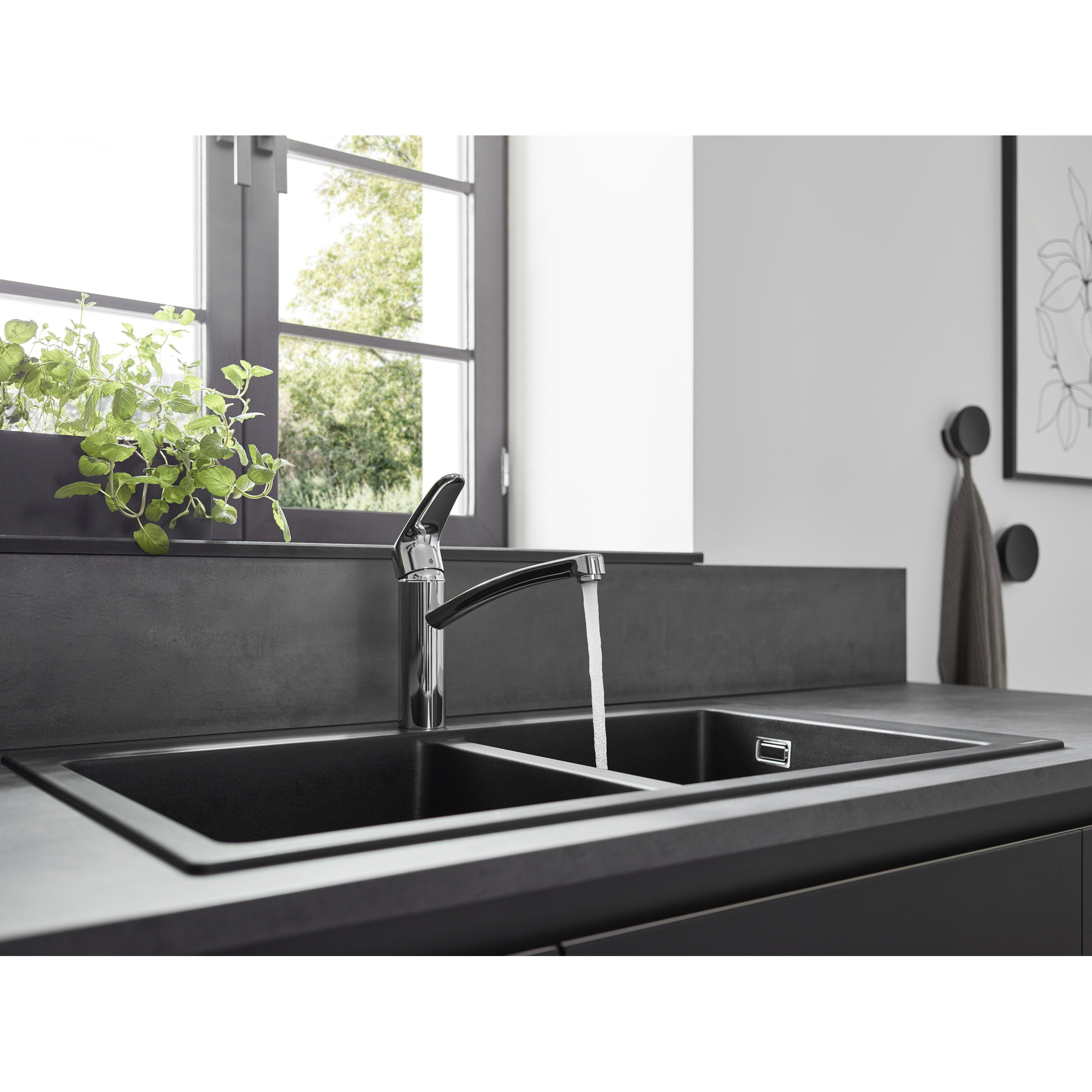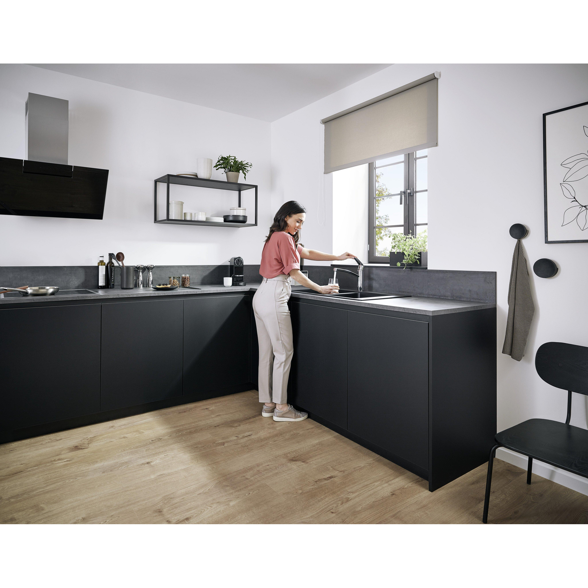 Ce robinet se distingue immédiatement par sa finition chromée épurée qui donne à votre cuisine une apparence moderne et fraîche. Le design minimaliste s'adapte parfaitement à divers styles d'intérieur, du contemporain épuré au classique chaleureux. Grâce aux matériaux de haute qualité, le robinet conserve son éclat et son apparence, même après des années d'utilisation intensive. Vous profitez ainsi non seulement d'un beau produit, mais aussi d'une valeur ajoutée durable pour votre cuisine.