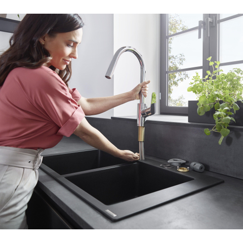 Avec ce mitigeur de cuisine, vous obtenez une combinaison de style, durabilité et facilité d’utilisation. Grâce aux fonctions intelligentes et au design réfléchi, cuisiner et nettoyer devient beaucoup plus simple et agréable. Complétez votre cuisine avec ce robinet de haute qualité et constatez vous-même la différence en termes de qualité et de confort.