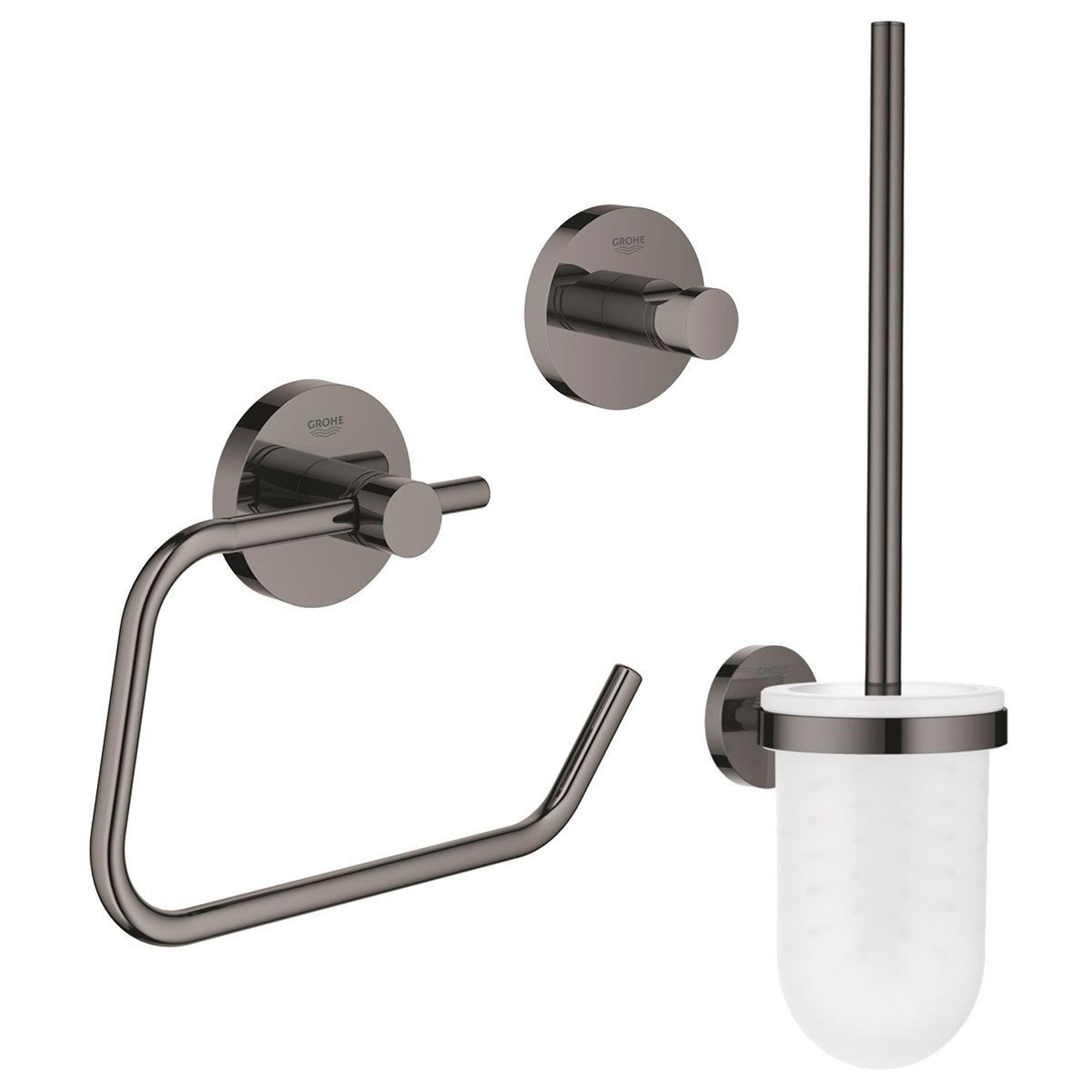 GROHE Essentials Ensemble d'accessoires pour WC 3 pièces avec porte-balai de WC, patère et porte-rouleau de papier toilette sans couvercle Hard graphite