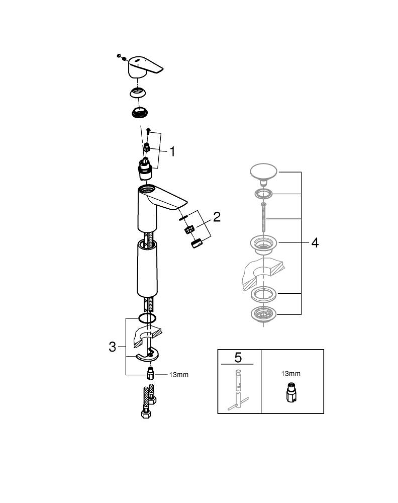 - Technologie GROHE Zero empêchant tout contact entre l’eau et l’alliage métallique