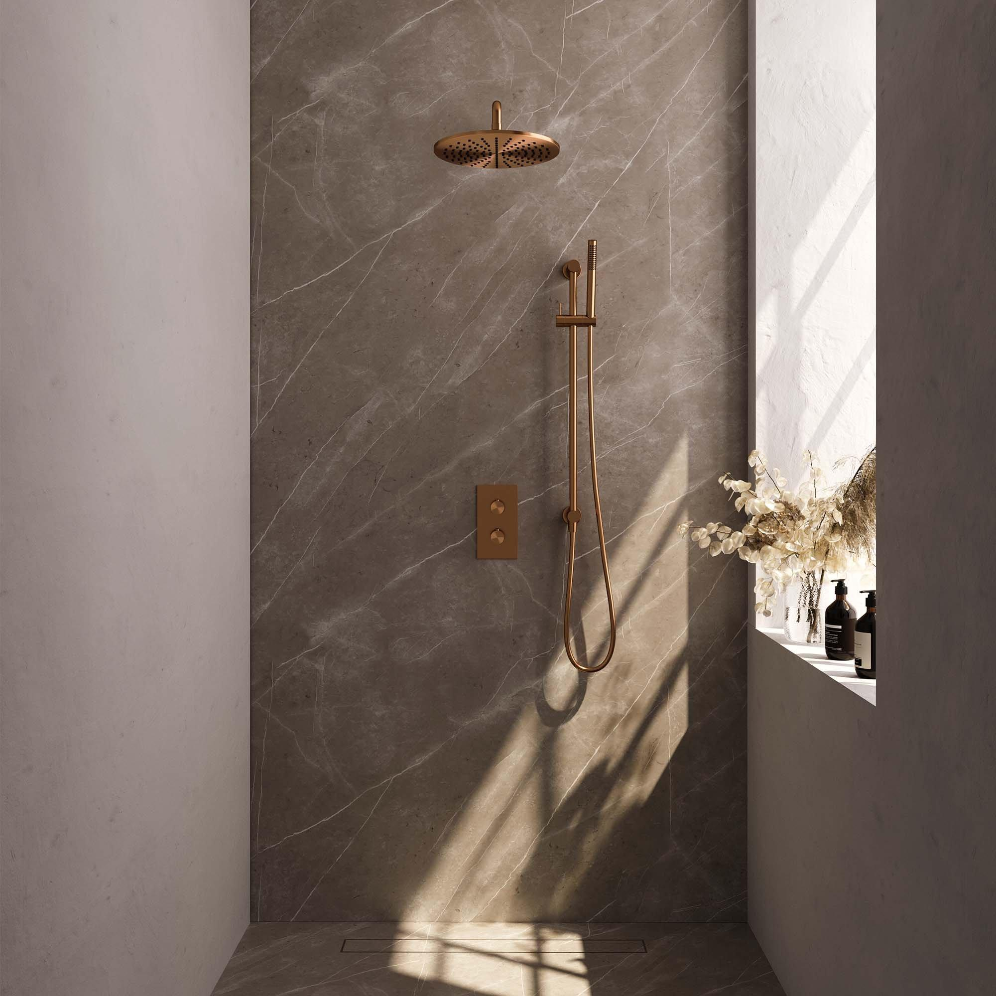 Brauer Copper Edition Ensemble de douche pluie encastré - douche principale 30cm - Corps lisse - douchette sur barre 1 fonction - glissière - PVD - cuivre brossé