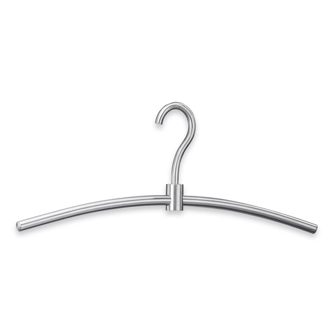 Ce cintre est fabriqué en acier inoxydable avec une finition mate et brossée. Cela signifie qu’il résiste parfaitement à l’humidité et à la vapeur, par exemple dans la salle de bains ou la buanderie. L’inox est un matériau robuste qui ne se plie ni ne s’abîme facilement, même si vous y suspendez des vêtements plus lourds ou un épais peignoir. Vous optez ainsi consciemment pour une solution qui dure des années, au lieu de cintres en plastique ou en bois qui s’usent ou se déforment plus rapidement. La structure mate rend en outre les petites traces de doigts et les micro-rayures moins visibles, de sorte que votre cintre conserve une belle apparence même en cas d’utilisation intensive.