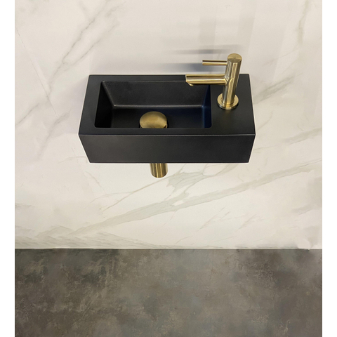 Wiesbaden Fonteinset Rhea S mini avec lavabo droit quartz, robinet, siphon et bouchon de vidange en laiton brossé